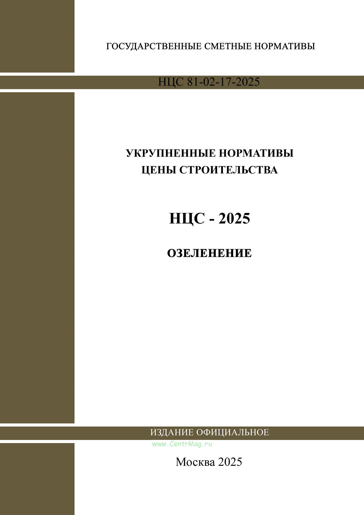 НЦС 81-02-17-2025 "Укрупненные нормативы цены строительства. Сборник N 17. Озеленение" утв. Приказом Минстроя России от 05.03.2025 № 134/пр