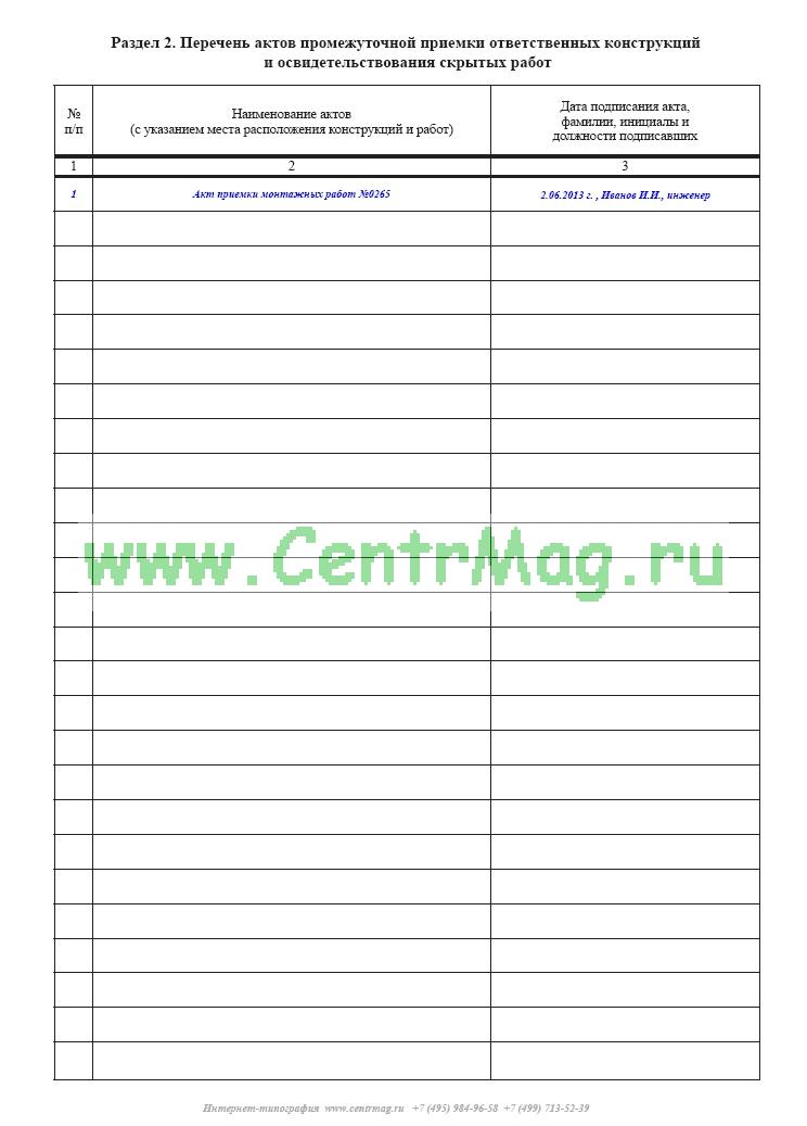 2. Перечень актов промежуточной приемки ответственных конструкций и освидетельствования скрытых работ