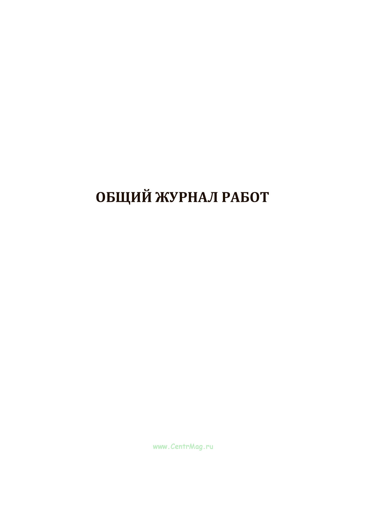 Общий Журнал работ должен быть пронумерован, прошнурован, оформлен всеми подписями на титульном листе и скреплен печатью генподрядной организацией, его выдавшей.