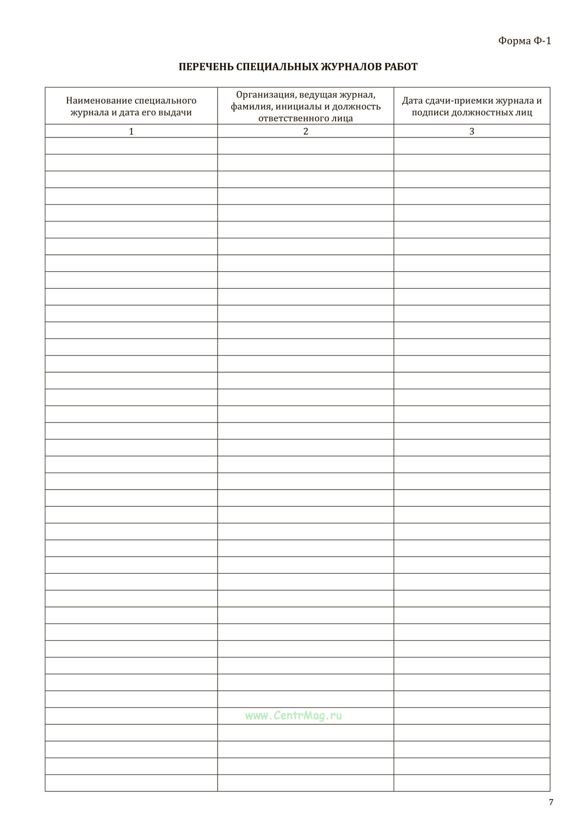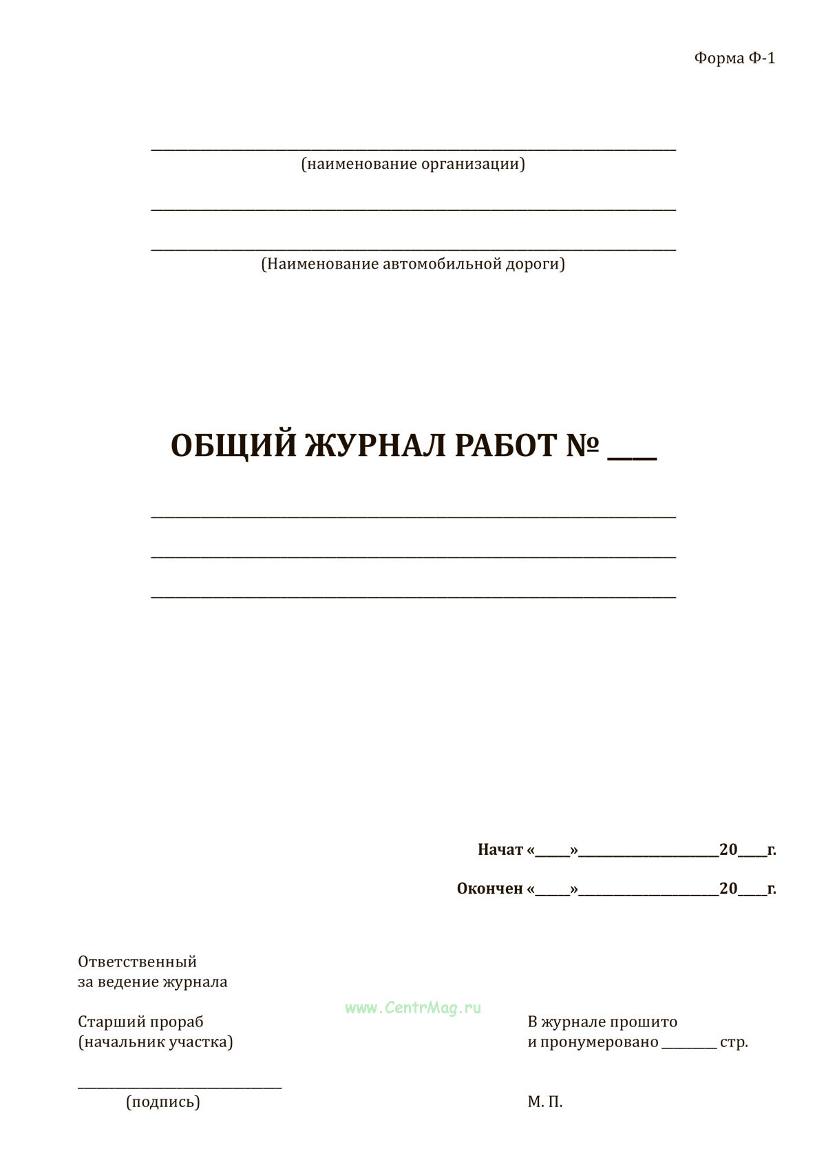 Общий журнал ведется по ремонту Объекта ответственным лицом (старшим прорабом, прорабом); с первого дня работы; старший прораб (прораб) заполняет его лично (при односменном режиме работы) или поручает вести его начальникам смен (при 2 - 3 сменном режиме работы). Специализированные организации, отряды, бригады, выполняющие отдельные работы, ведут специальные журналы, которые по окончании этих видов работ передаются генеральной подрядной организации.