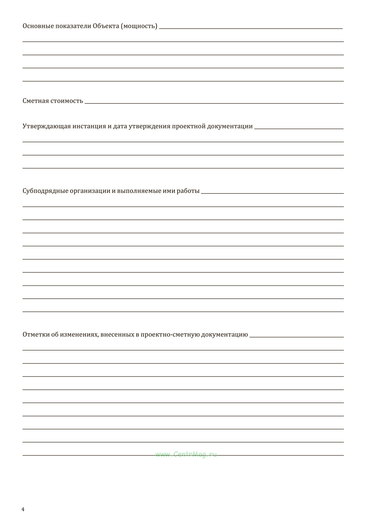 При вводе законченного Объекта в эксплуатацию общий и специальные журналы работ представляются со всей исполнительной документацией приемочной комиссии и после ввода Объекта в эксплуатацию передаются на хранение эксплуатационной организации.