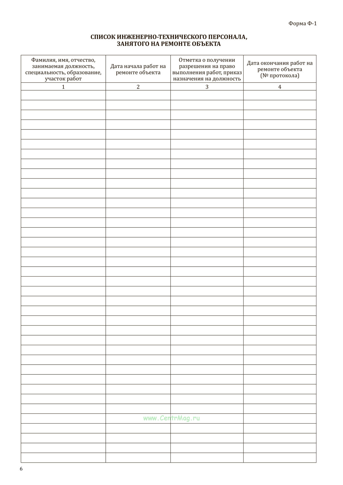Список инженерно-технического персонала, занятого на ремонте объекта