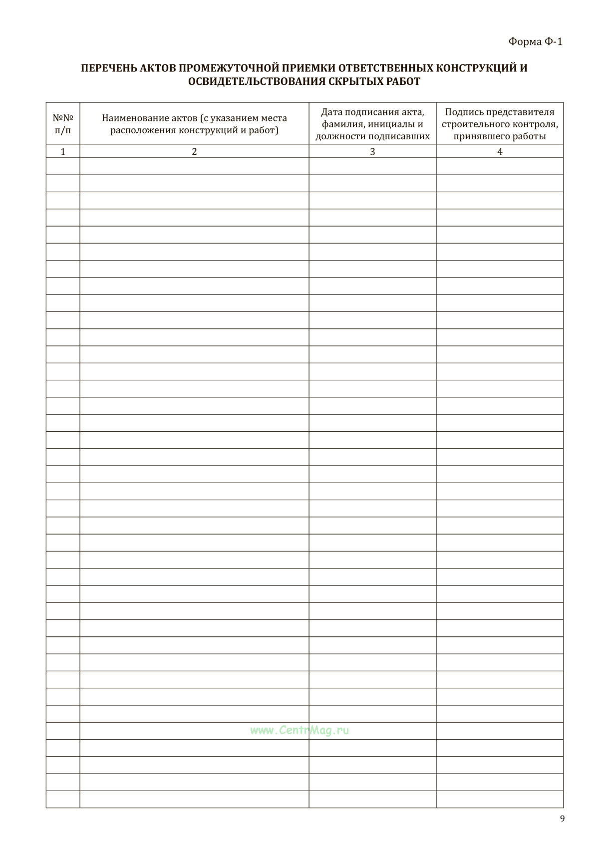 Перечень актов промежуточной приемки ответственных конструкций и освидетельствования скрытых работ