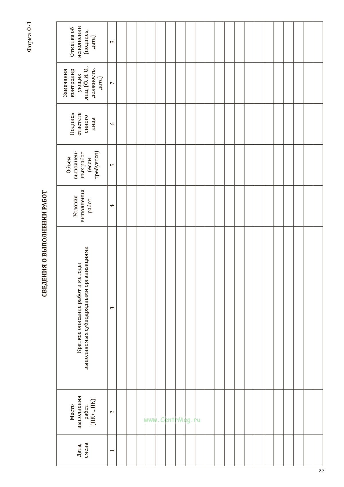 Систематические сведения о выполнении работ (с начала и до завершения) должны записываться в разделе "Сведения о выполнении работ".