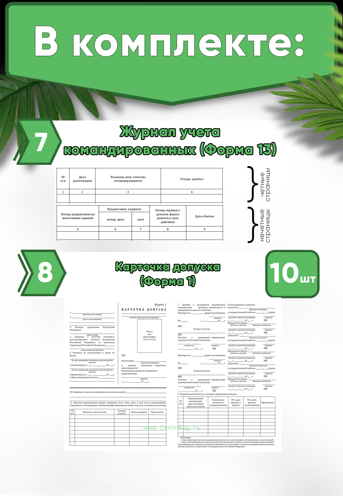 8. Карточка допуска (Форма 1) - 10 шт.