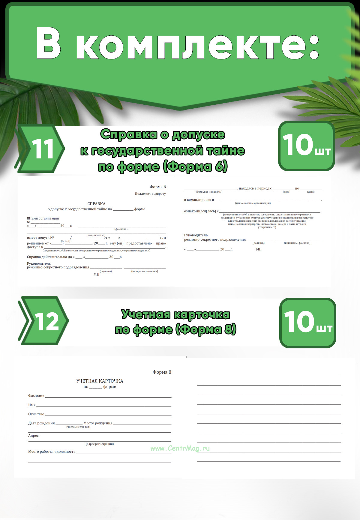 11. Справка о допуске к государственной тайне по форме (Форма 6) - 10 шт.
