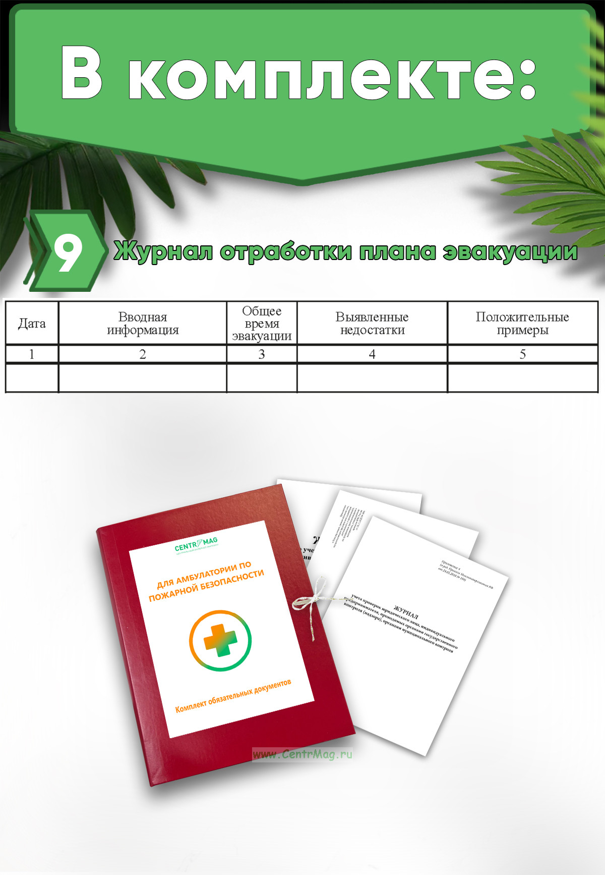 Комплект обязательных документов по пожарной безопасности для амбулатории подготовлен в соответствии с требованиями действующего законодательства РФ.