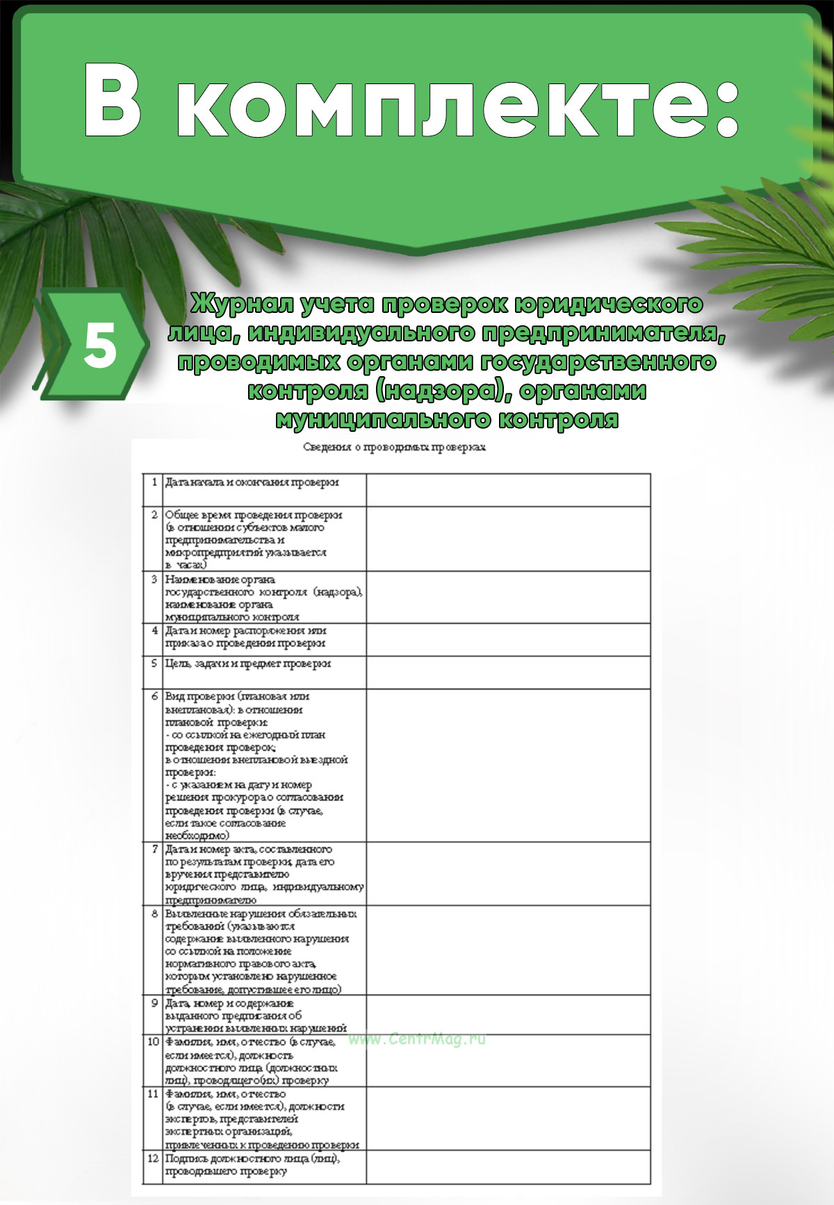 7. Журнал учета проверок юридического лица, индивидуального предпринимателя, проводимых органами государственного контроля (надзора), органами муниципального контроля