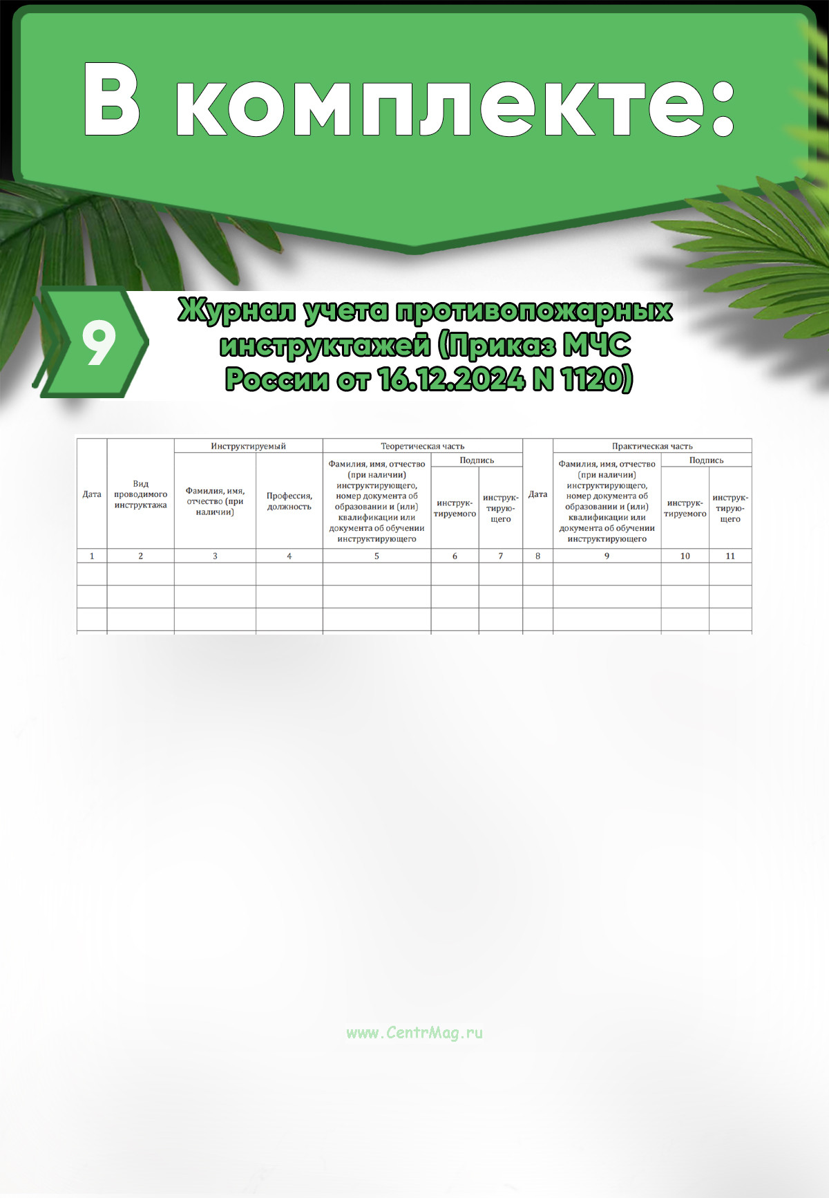 9. Журнал учета противопожарных инструктажей (Приказ МЧС России от 18.11.2021 N 806)