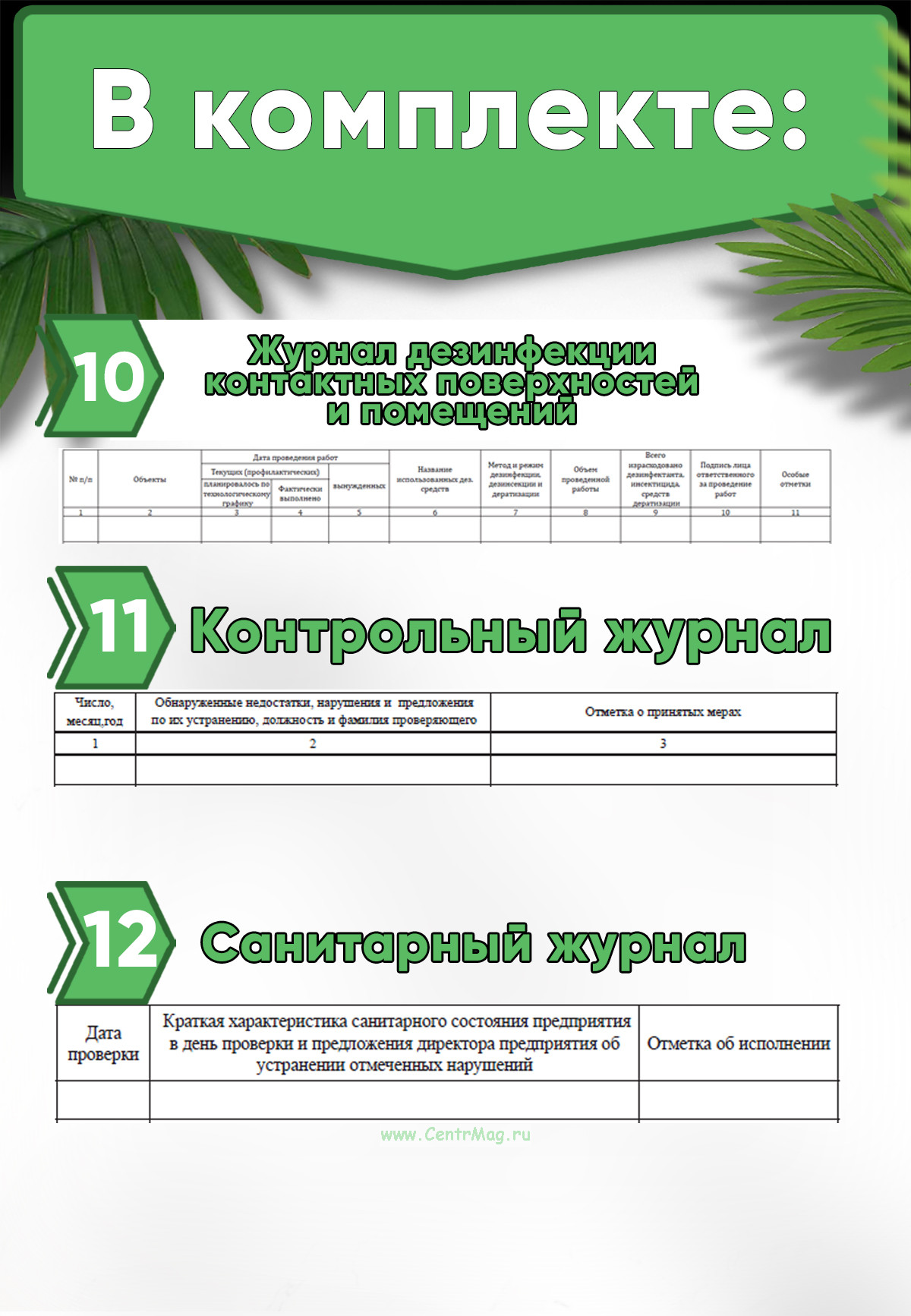Набор журналов для общепита подготовлен в соответствии с действующим законодательством РФ, в том числе с требованиями Роспотребнадзора.