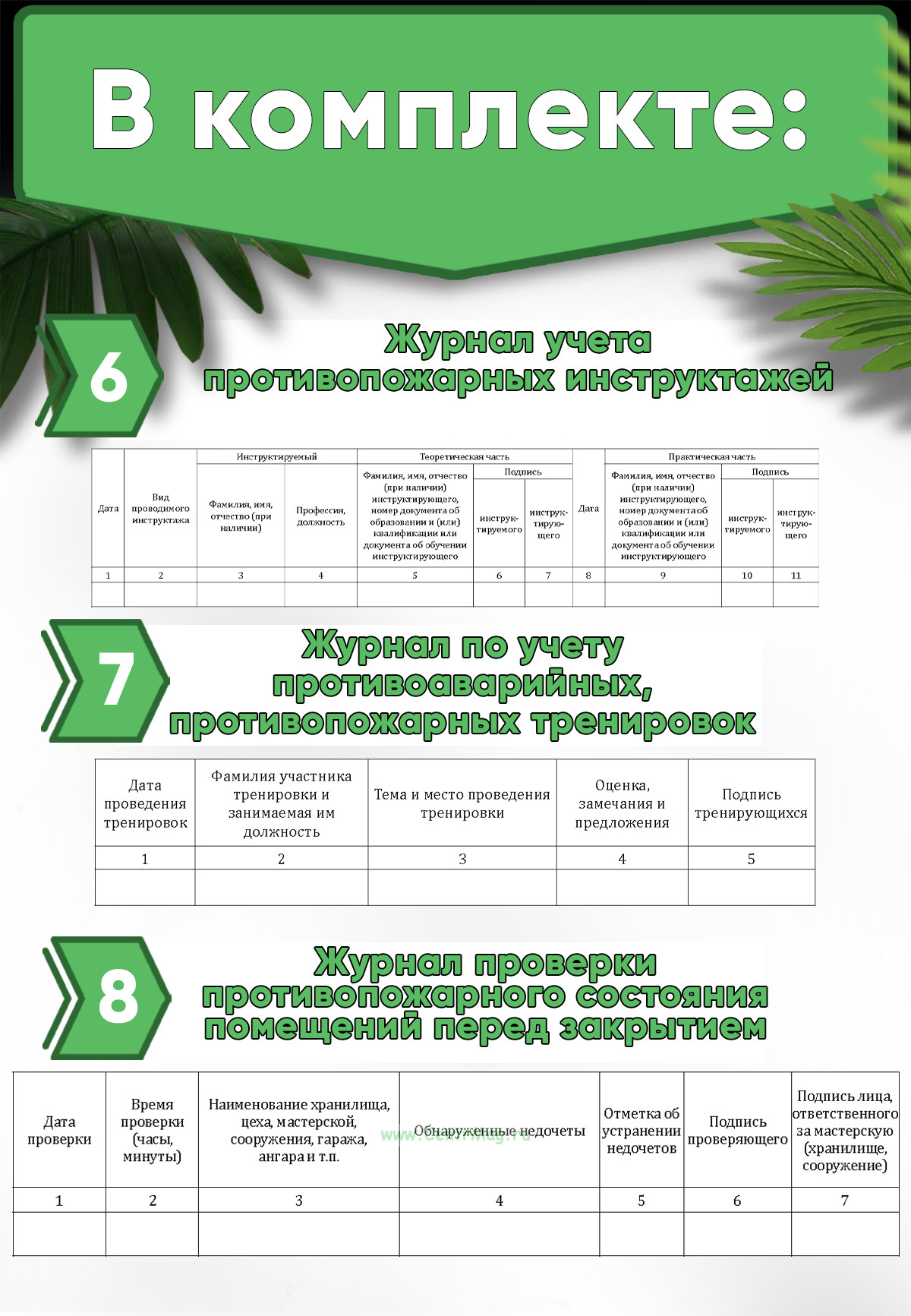 Содержимое комплекта является рекомендуемым, его ведение не регламентируется на законодательном уровне.