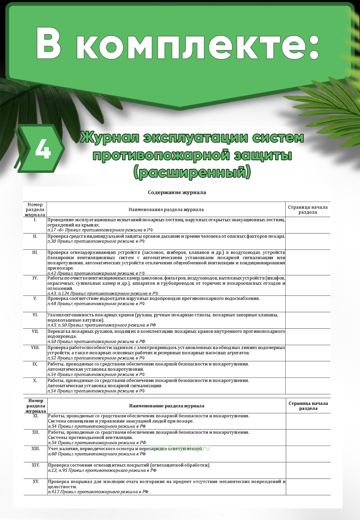 Список документов и журналов, которые входят в комплект: