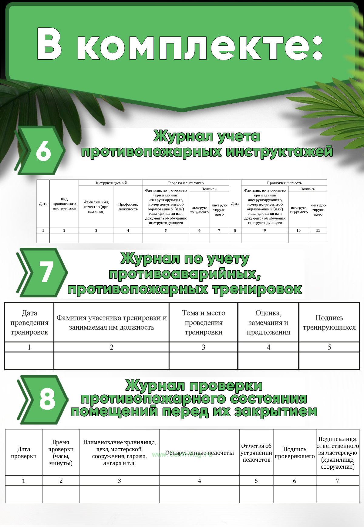 Список документов и журналов, которые входят в комплект: