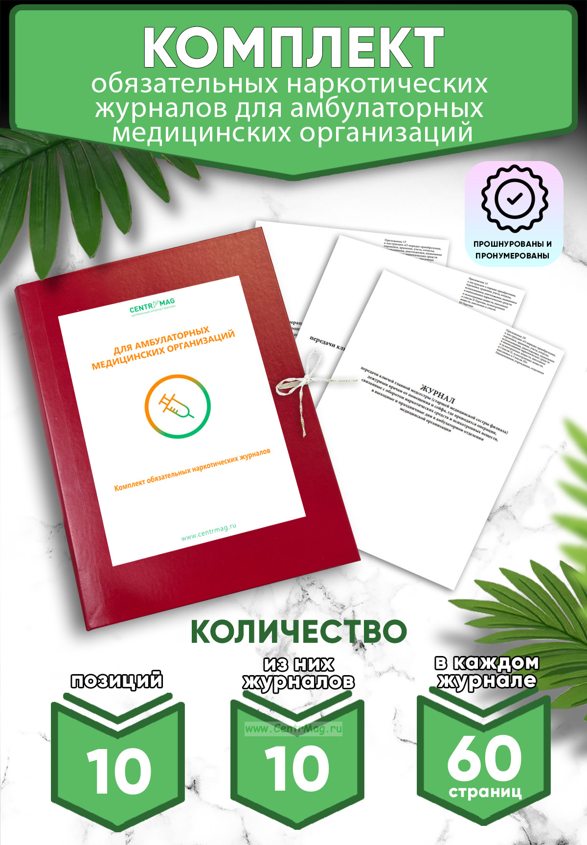 Журналы в комплекте имеют по 60 страниц, пронумерованы, прошнурованы и подготовлены для скрепления печатью.