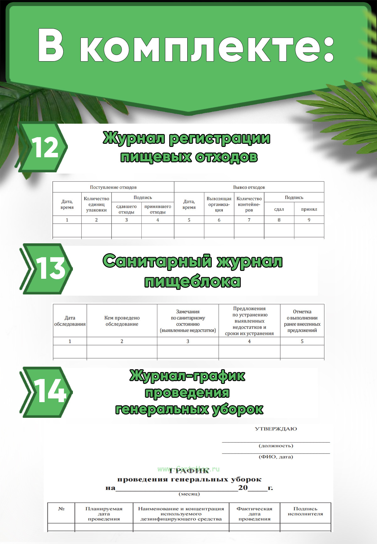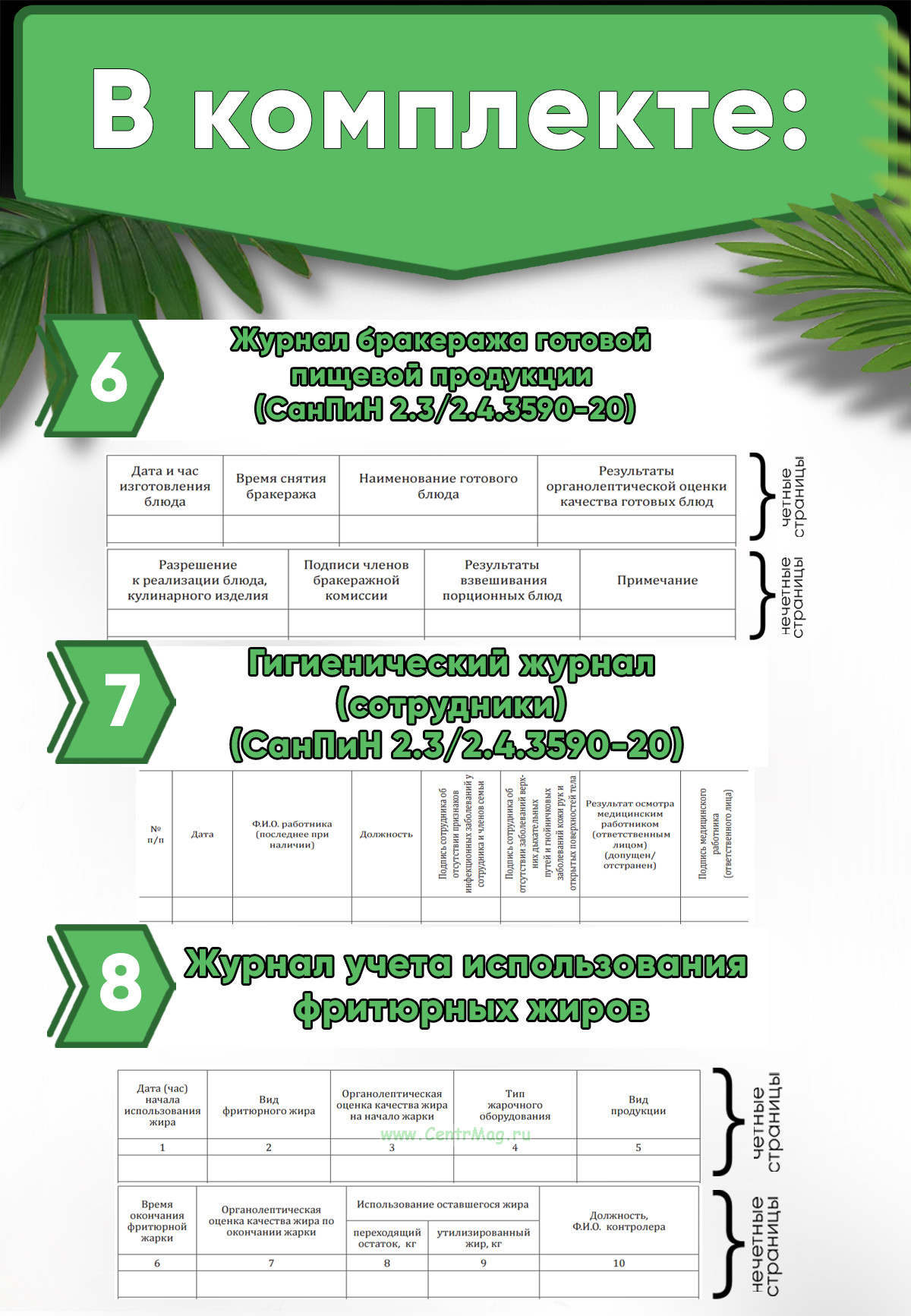Комплект подготовлен в соответствии с требованиями действующего законодательства РФ, главным образом СанПиН 2.3/2.4.3590-20 Санитарно-эпидемиологические требования к организации общественного питания населения.