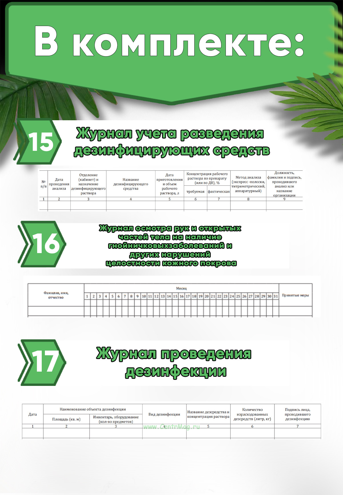 14. Журнал осмотра рук и открытых частей тела на наличие гнойничковых заболеваний и других нарушений целостности кожного покрова