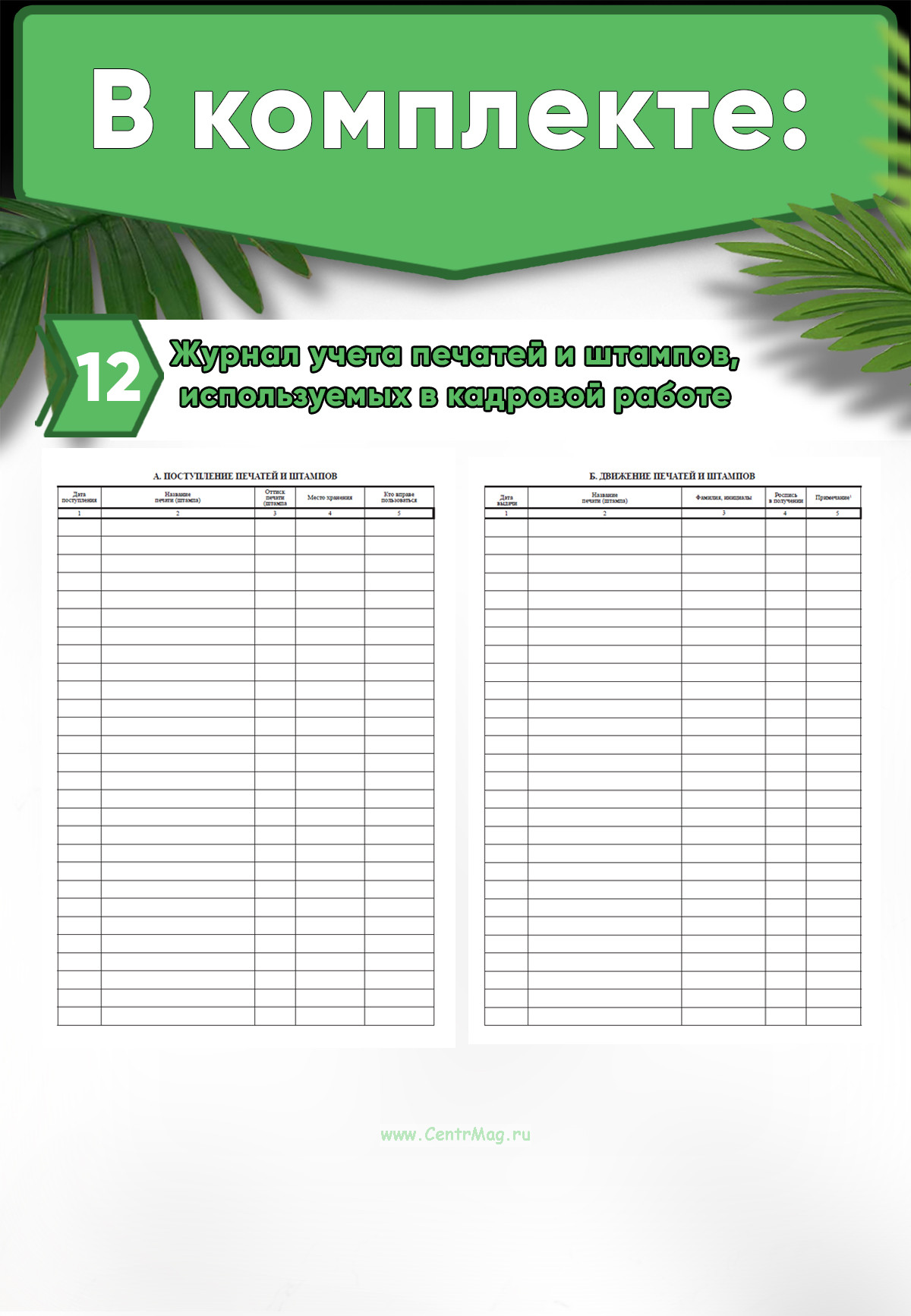 12. Журнал учета печатей и штампов, используемых в кадровой работе