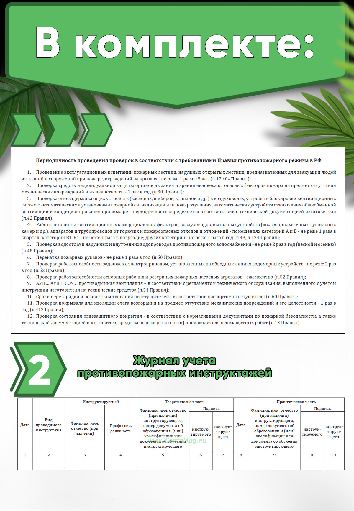 В комплект собраны самые необходимые журналы. Возможно Вашей организации необходимы и другие. Подробнее узнайте у Вашего инспектора государственного пожарного надзора.