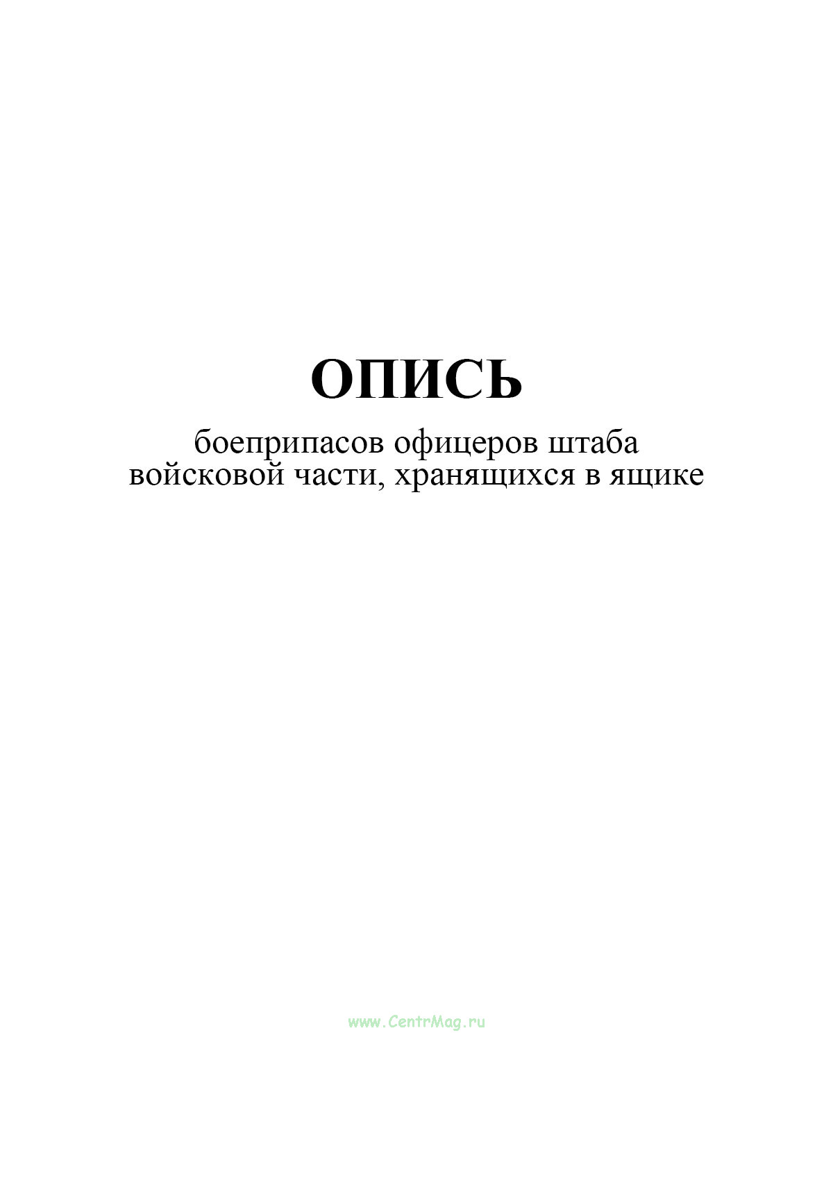 Опись боеприпасов офицеров штаба войсковой части, хранящихся в ящике продается только как чистый незаполненный бланк, без печатей и подписей соответствует 149-ФЗ от 27.07.2006