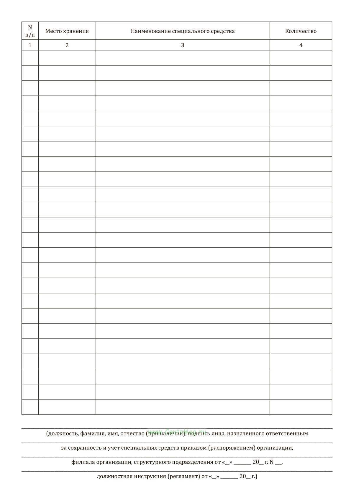 Опись специальных средств, находящихся в местах их хранения продается только как чистый незаполненный бланк, без печатей и подписей соответствует 149-ФЗ от 27.07.2006