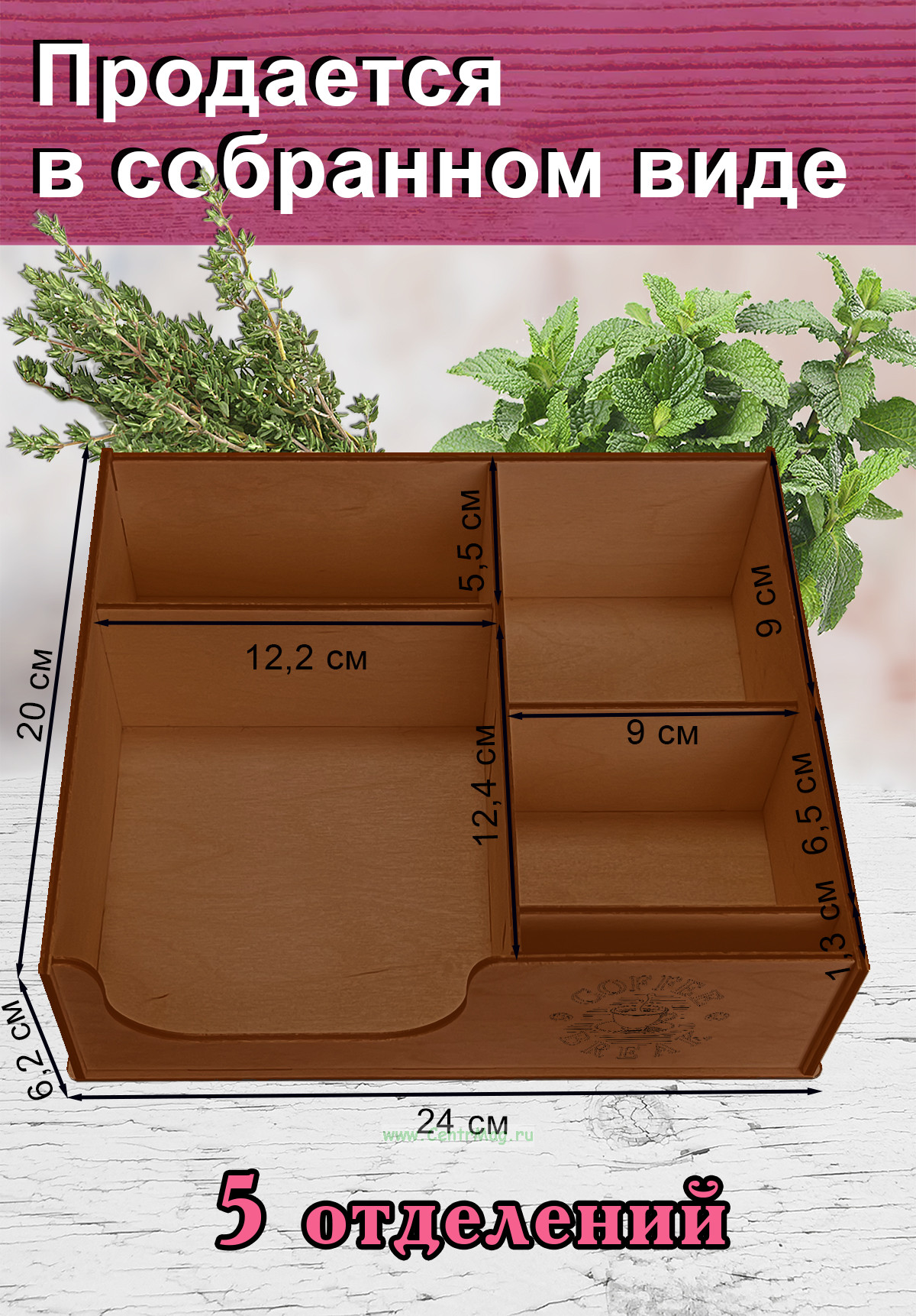 Органайзер барный для кофе, чая, специй и салфеток "Кофебиение" (мини, светлый орех), 5 отсеков (440 руб.)