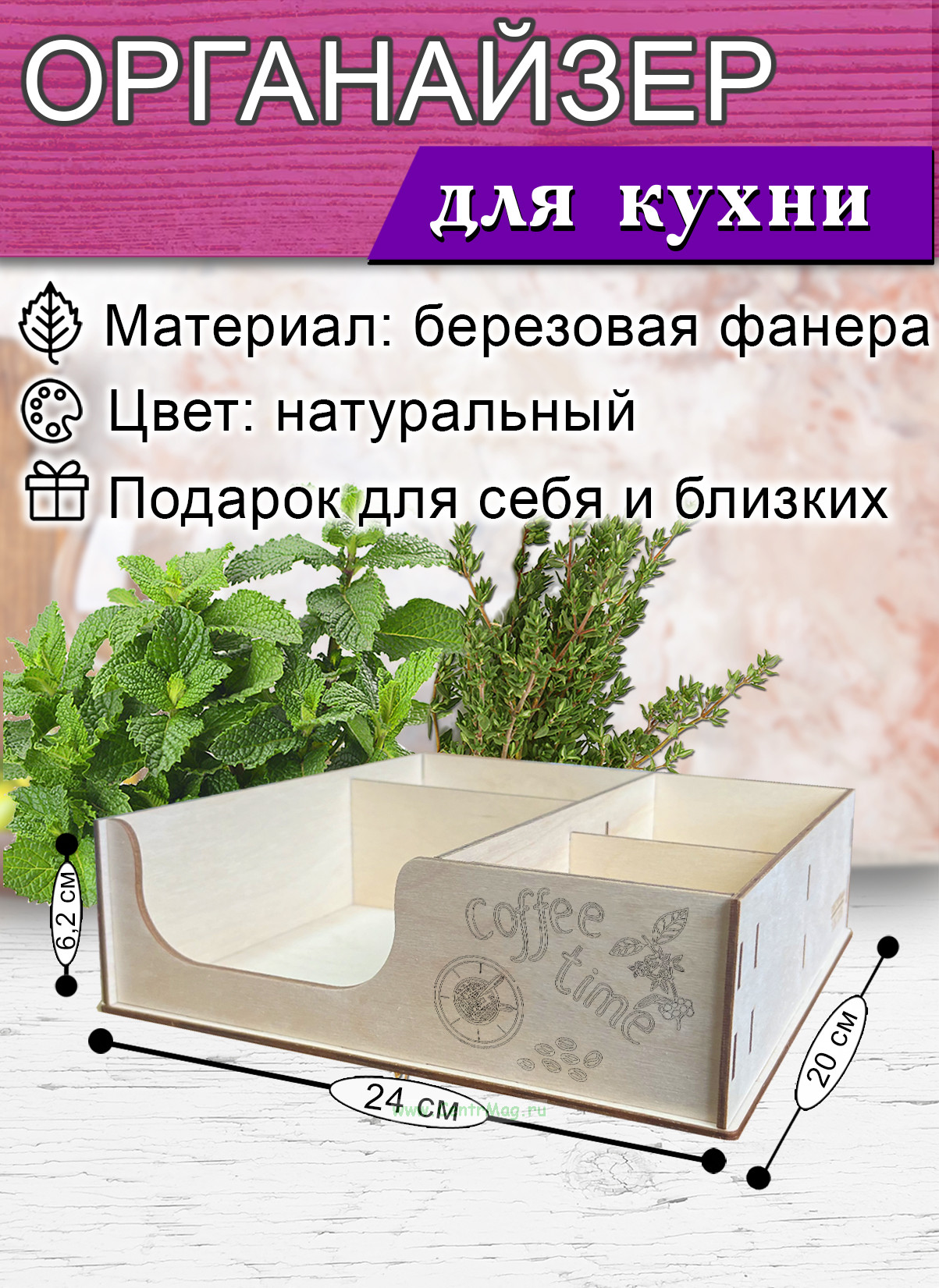 Органайзер барный для кофе, чая, специй и салфеток "Coffee break" (мини, натуральный), 5 отсеков (370 руб.)
