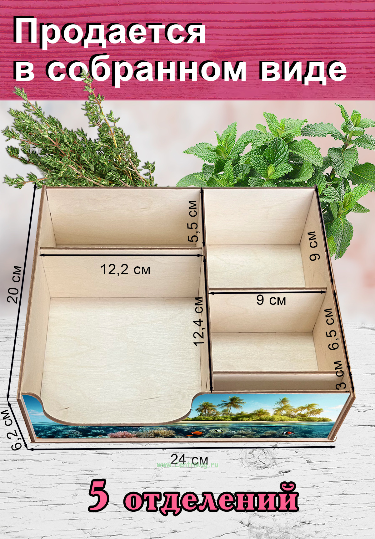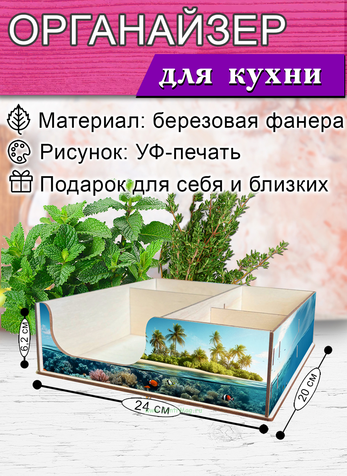 Размер органайзера: 20 х 24 х 6,2 см