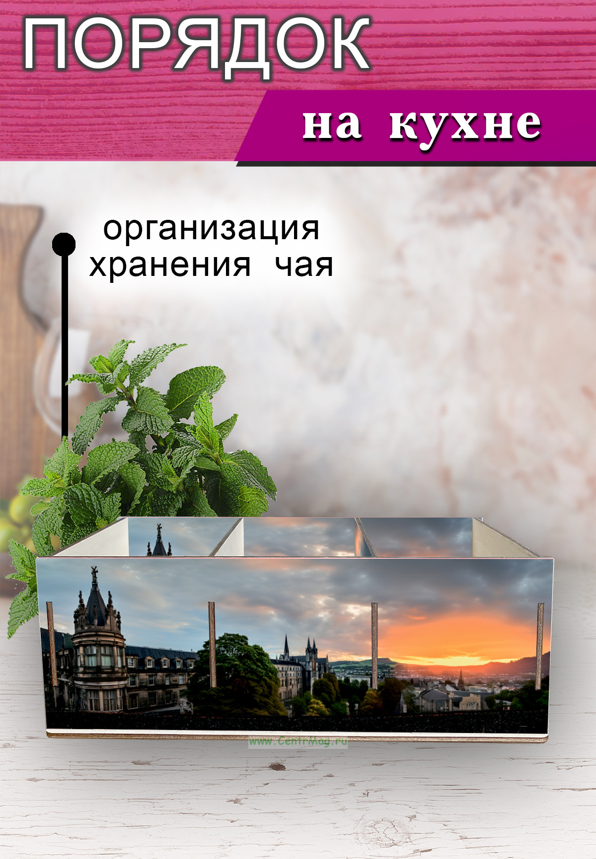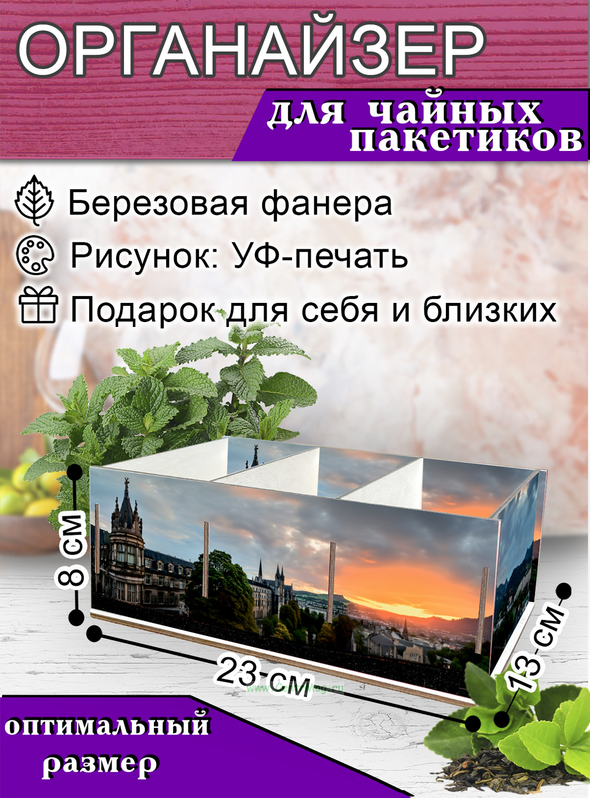 Органайзер для чайных пакетиков "Ночной город", 23х13х8 см, 3 отсека (740 руб.)