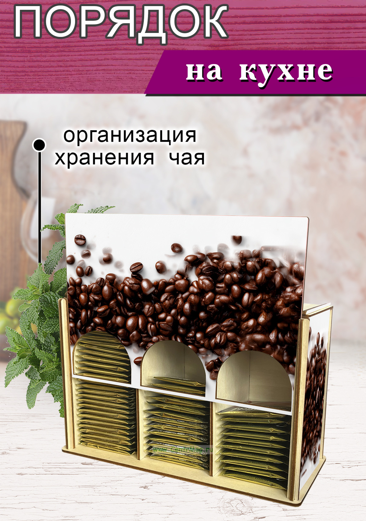 Органайзер для чайных пакетиков вертикальный "Кофе" (резной), 15,5 х 9 х 23,1 см (950 руб.)