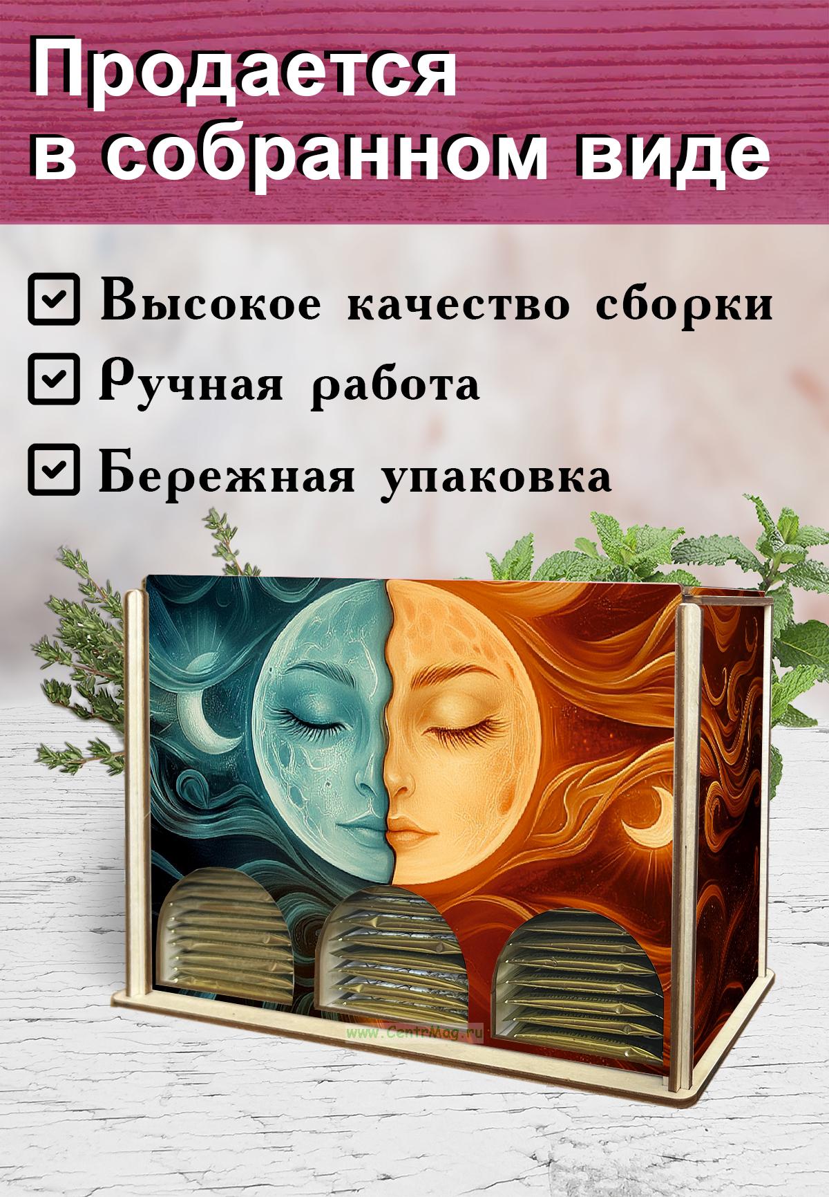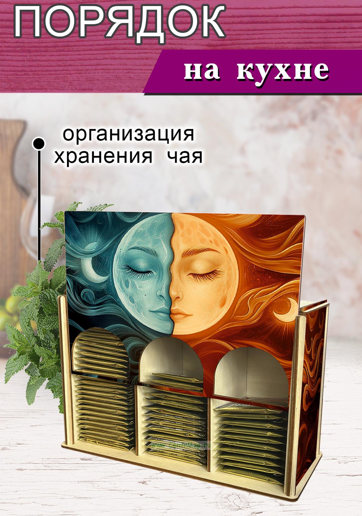 Органайзер для чайных пакетиков "Солнце и Луна", 23х13х8 см, 3 отсека (353 руб.)