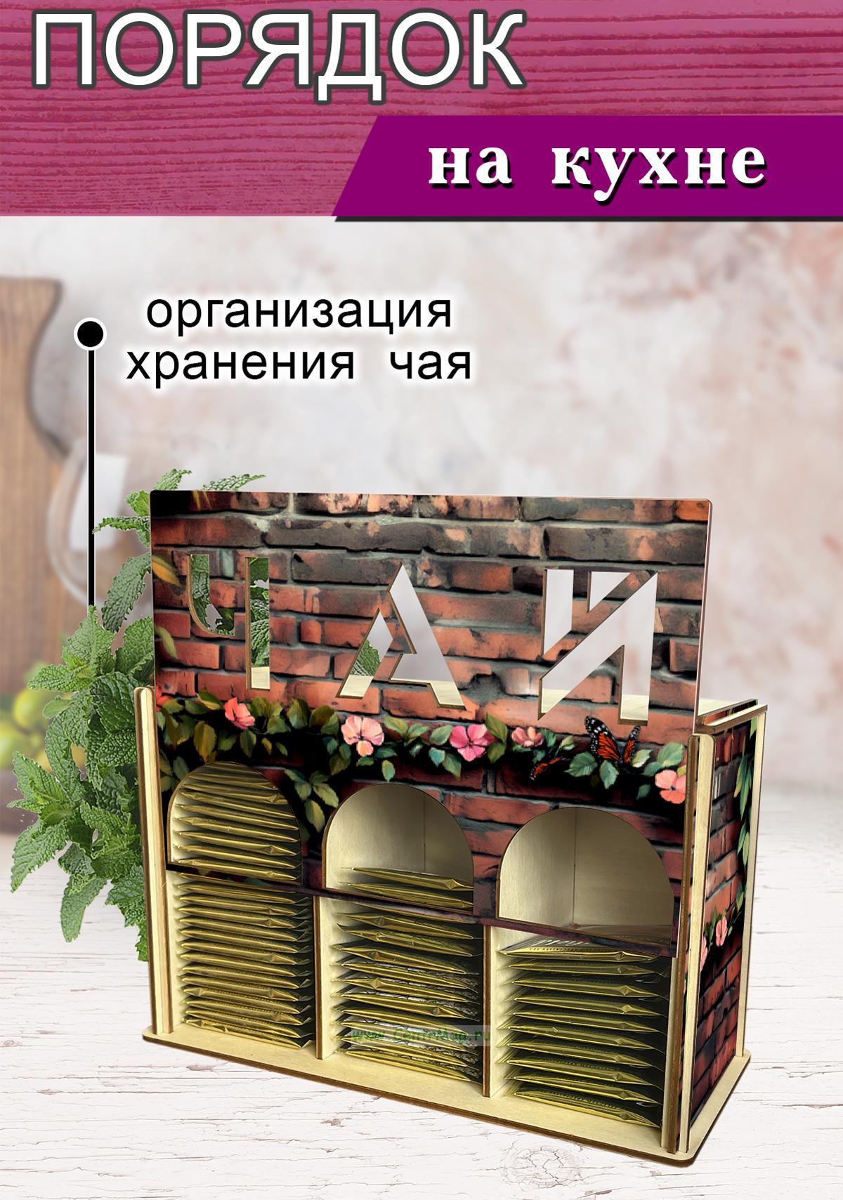 Органайзер для чайных пакетиков вертикальный "Вьюн" (резной), 15,5 х 9 х 23,1 см