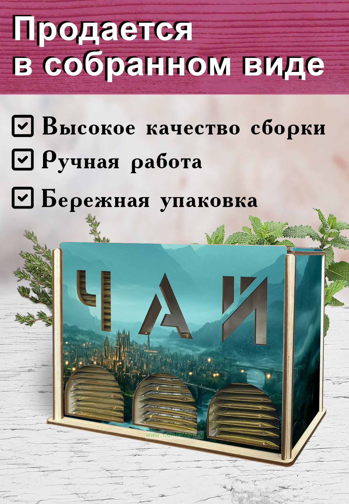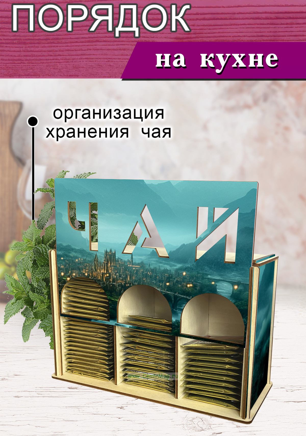 Органайзер для чайных пакетиков вертикальный "Ночной город" (резной), 15,5 х 9 х 23,1 см (475 руб.)