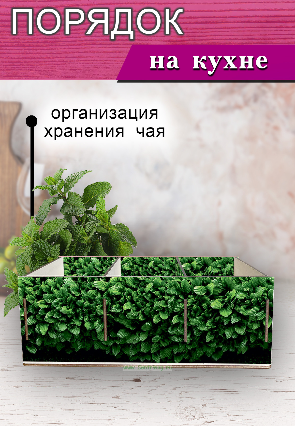 Органайзер для чайных пакетиков вертикальный "Зелень", 15,5 х 9 х 23,1 см (1050 руб.)