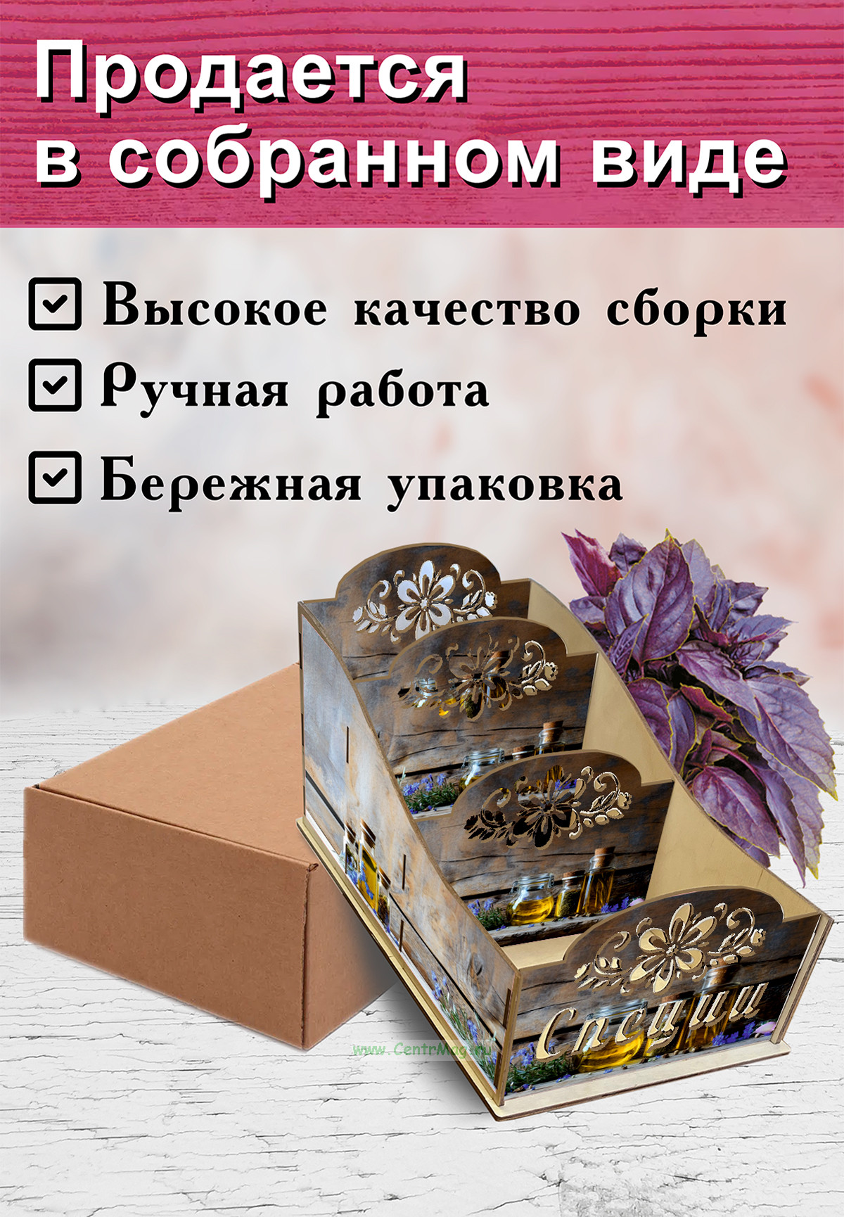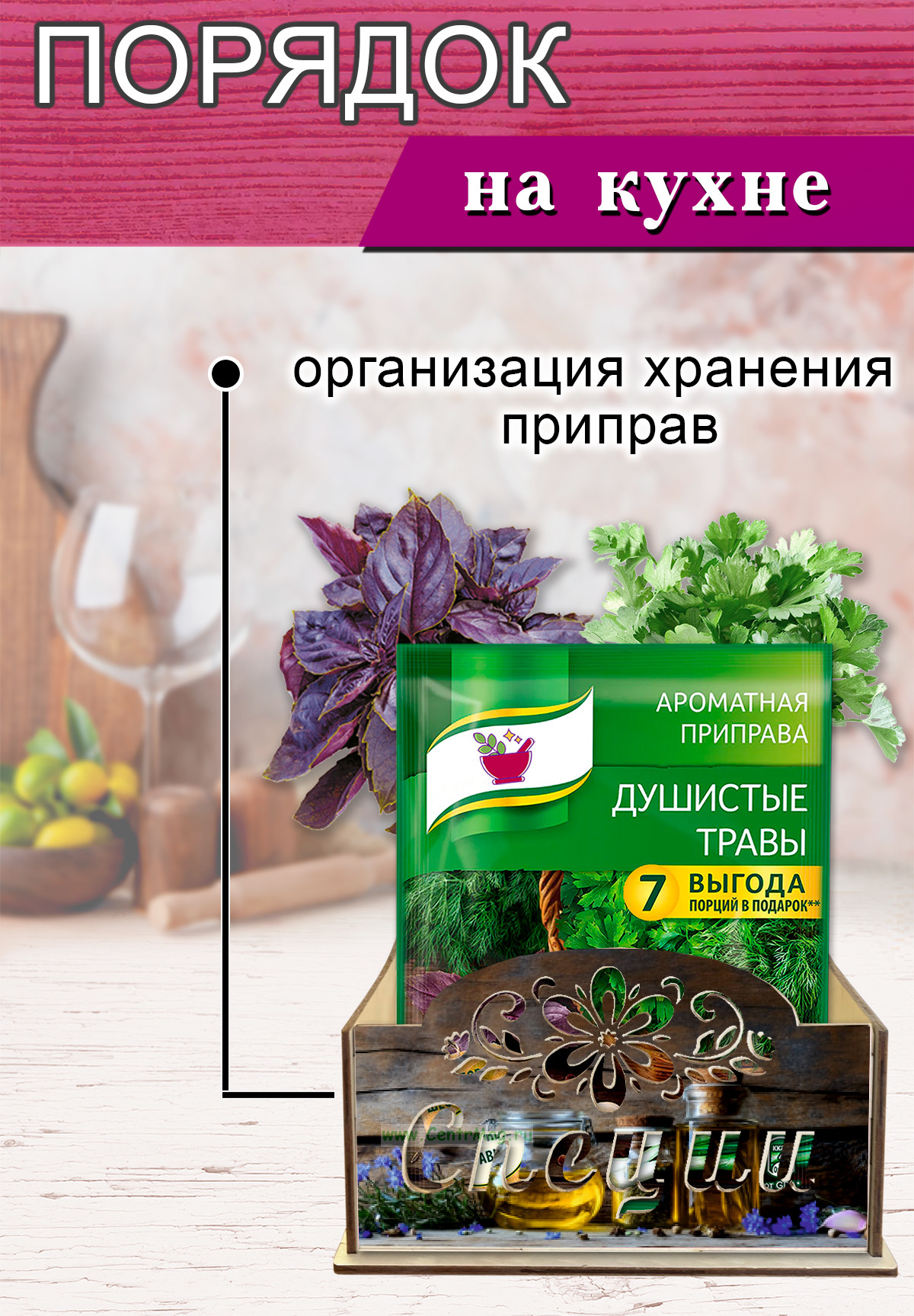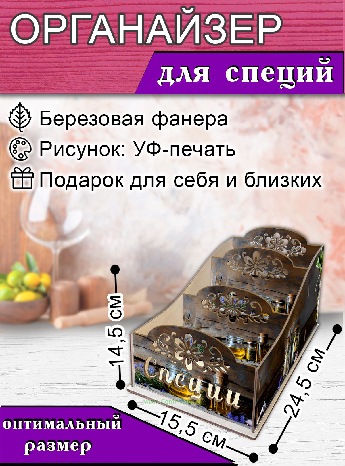 Органайзер для специй "Натюрморт", 4 отсека, 12х14х26 см (384 руб.)