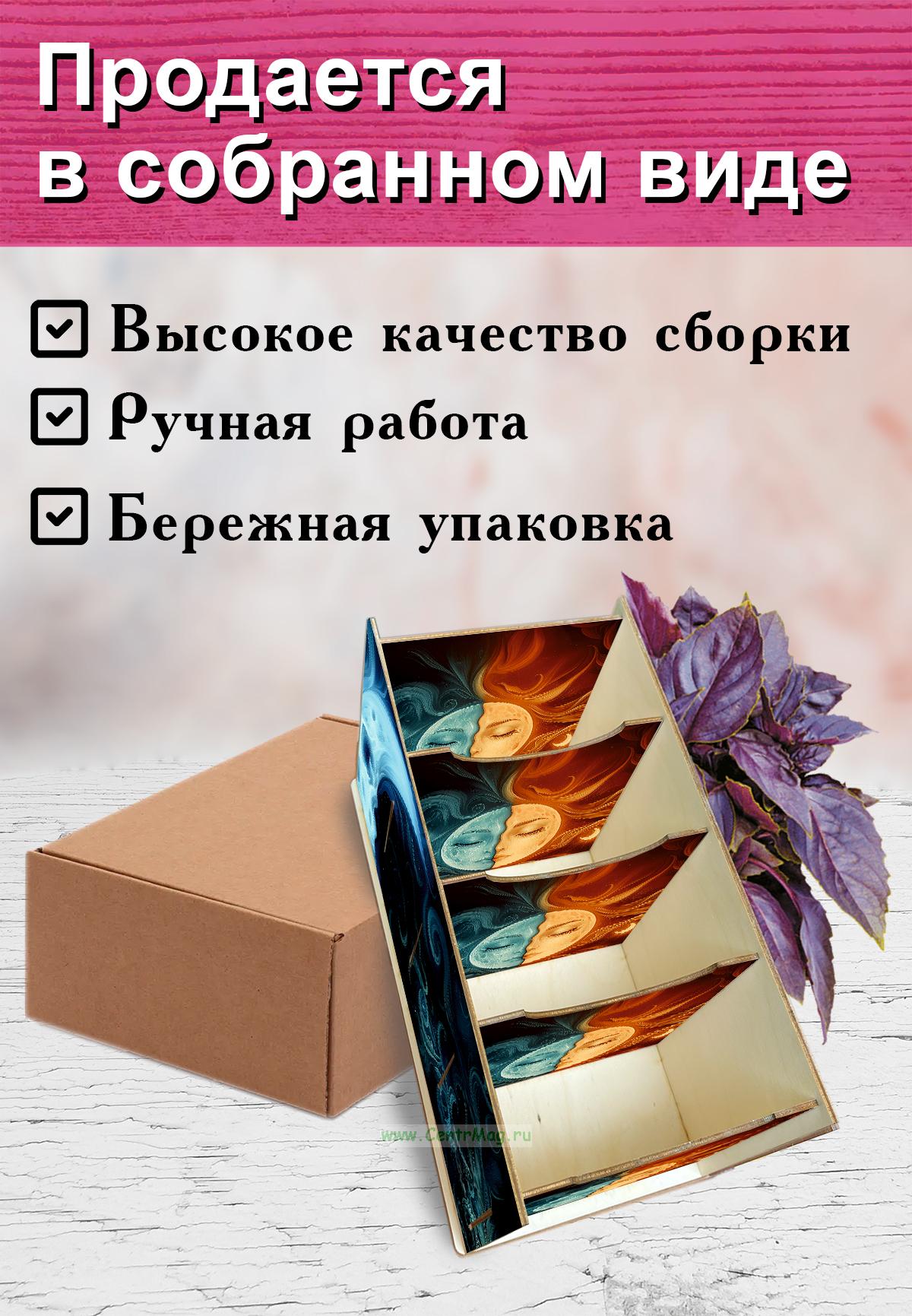 Дизайнерский органайзер для специй поможет организовать хранение приправ и обеспечить порядок на кухне. Контейнер вмещает в себя большое количество душистых пакетиков с орегано, сушеным базиликом, чесноком и другими пряностями. Приятный натуральный дизайн контейнера дополнит любой интерьер и придаст ему домашний уют. Оптимальный размер позволяет расположить органайзер, как на столе, так и на полке шкафа.