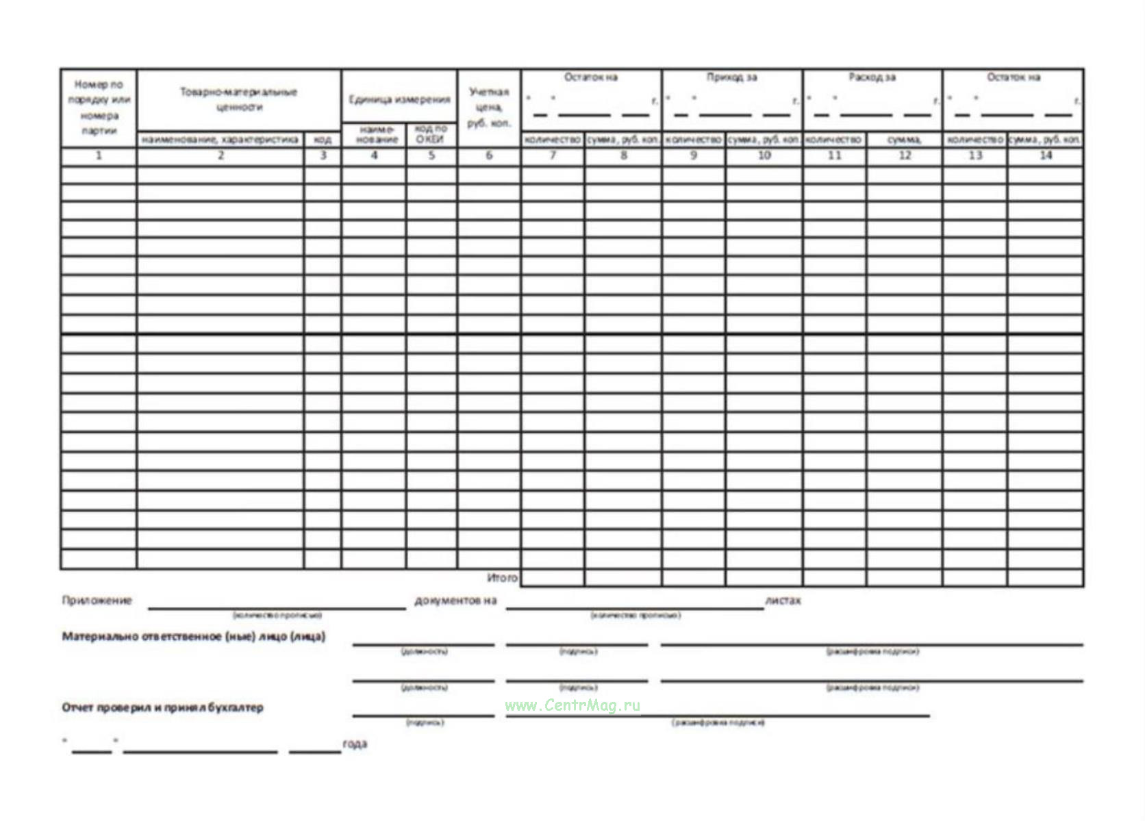 Отчет применяется для предоставления в бухгалтерию данных о движении товарно-материальных ценностей за отчетный период.