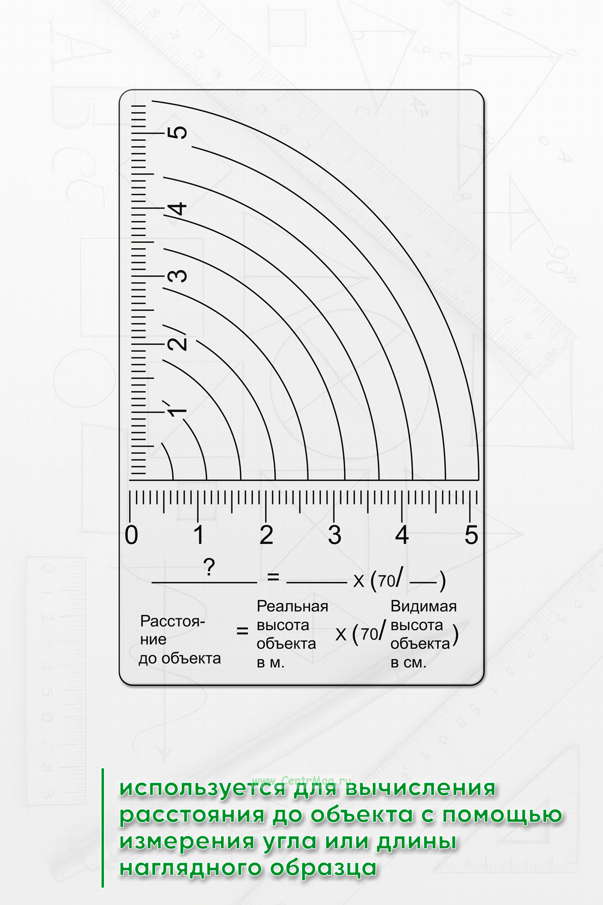 Палетка для определения дистанции используется для вычисления расстояния до объекта с помощью измерения угла или длины наглядного образца.Она помогает быстро и точно определить расстояние, не используя сложное оборудование.