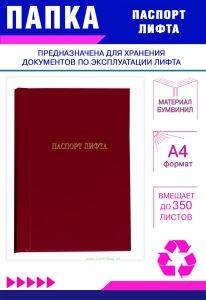 Папка-скоросшиватель "Паспорт лифта", бордовый бумвинил
