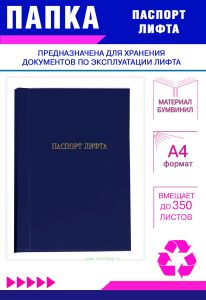 Папка-скоросшиватель "Паспорт лифта", синий бумвинил