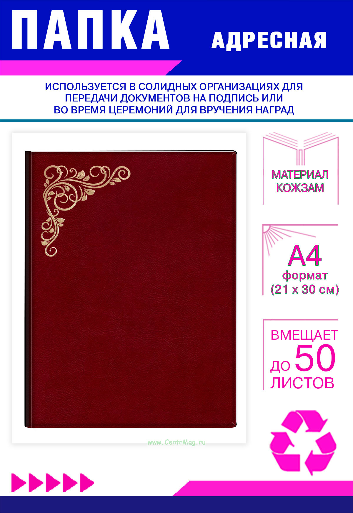 Папка адресная с узором, А4, бумвинил, бордовый (700 руб.)