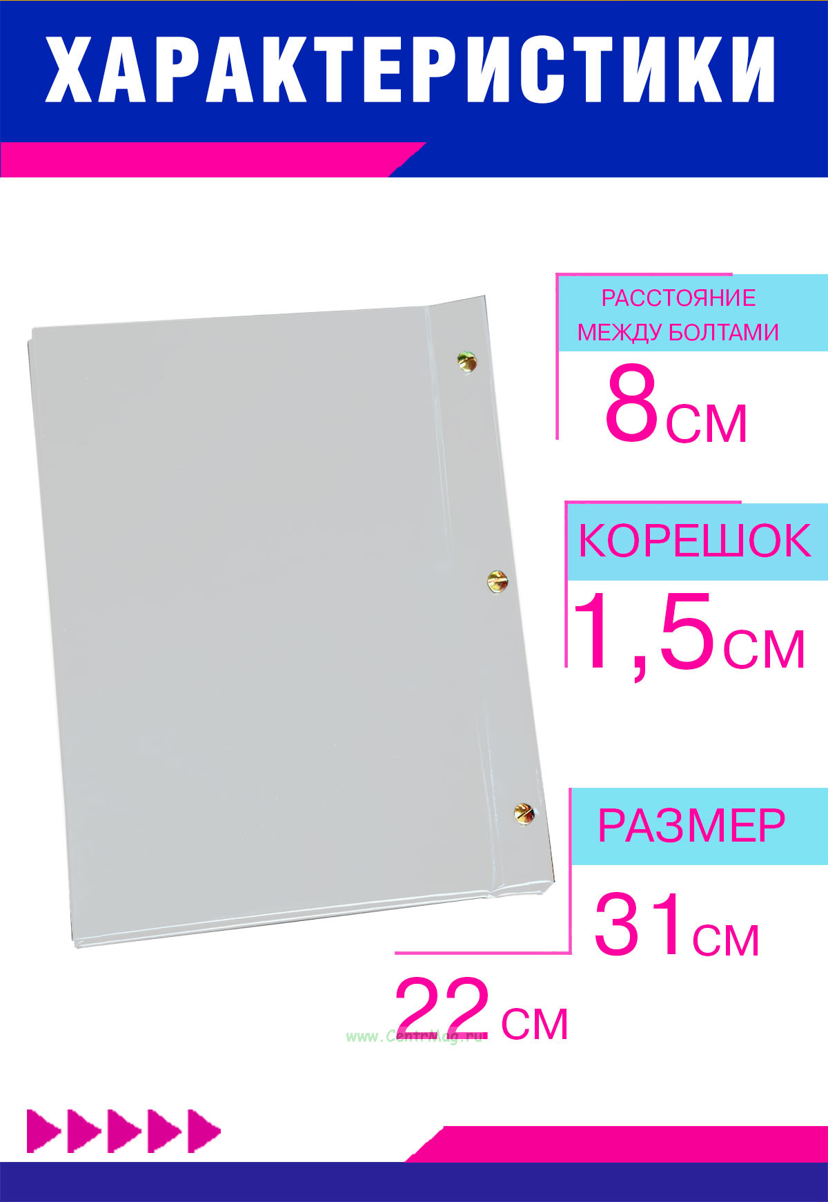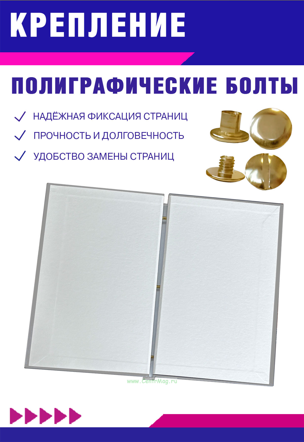 Крепление: три металлических винта для надежного закрепления документов
