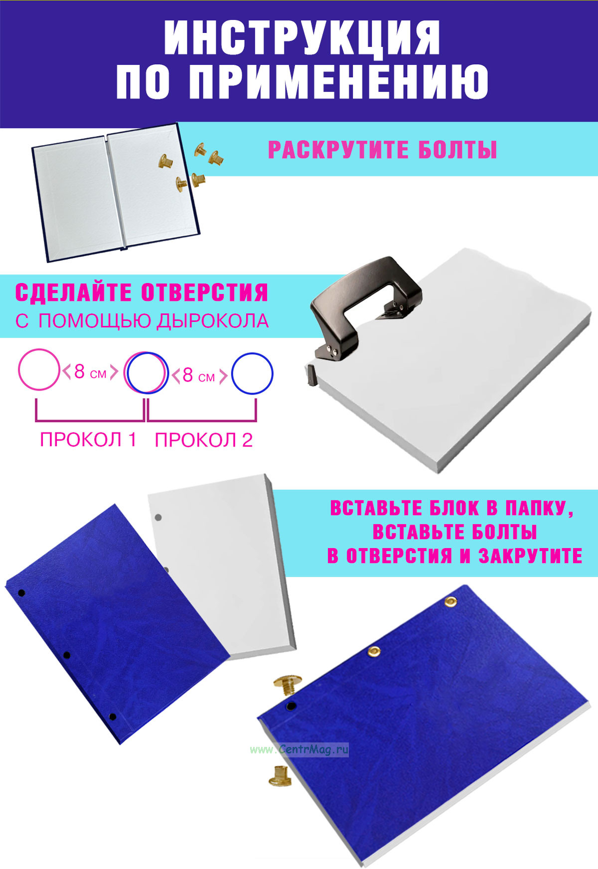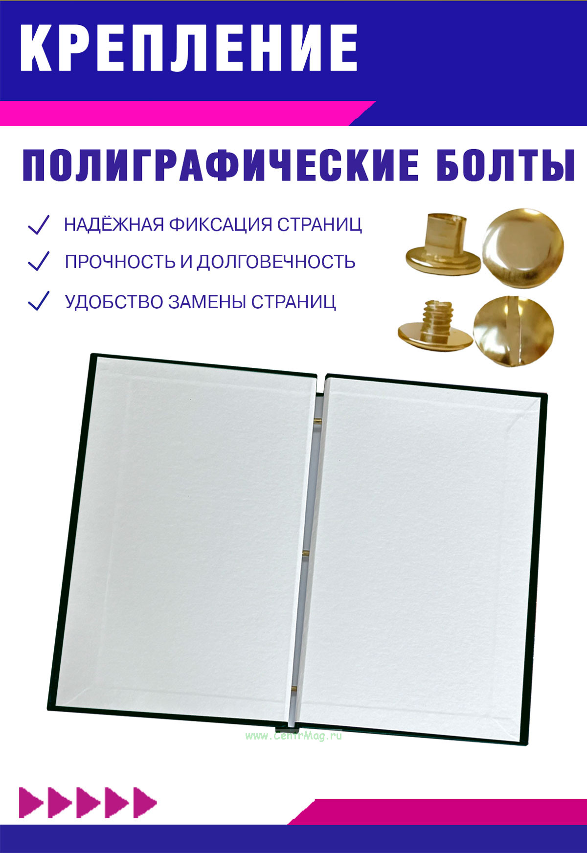 Крепление: три металлических винта для надежного закрепления документов