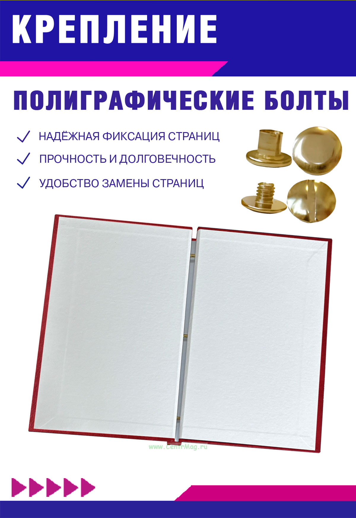 Крепление: три металлических винта для надежного закрепления документов