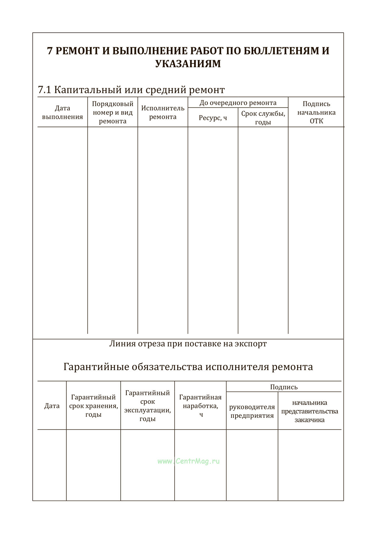 7 Ремонт и выполнение работ по бюллетеням и указаниям