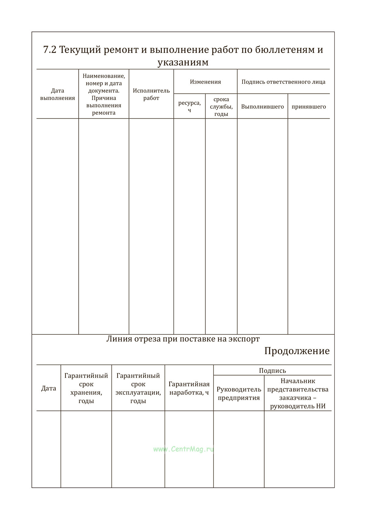 7.2 Текущий ремонт и выполнение работ по бюллетеням и указаниям