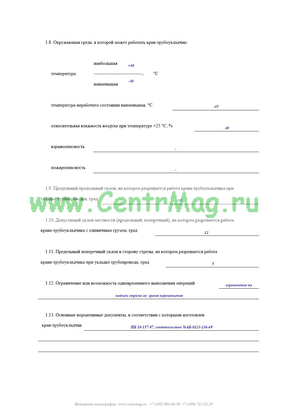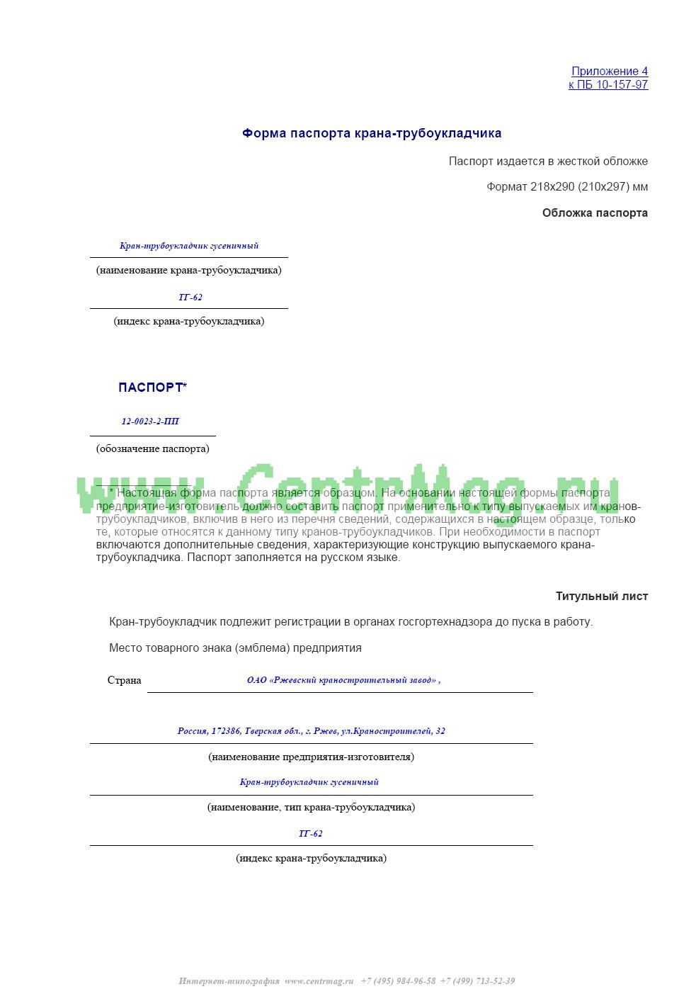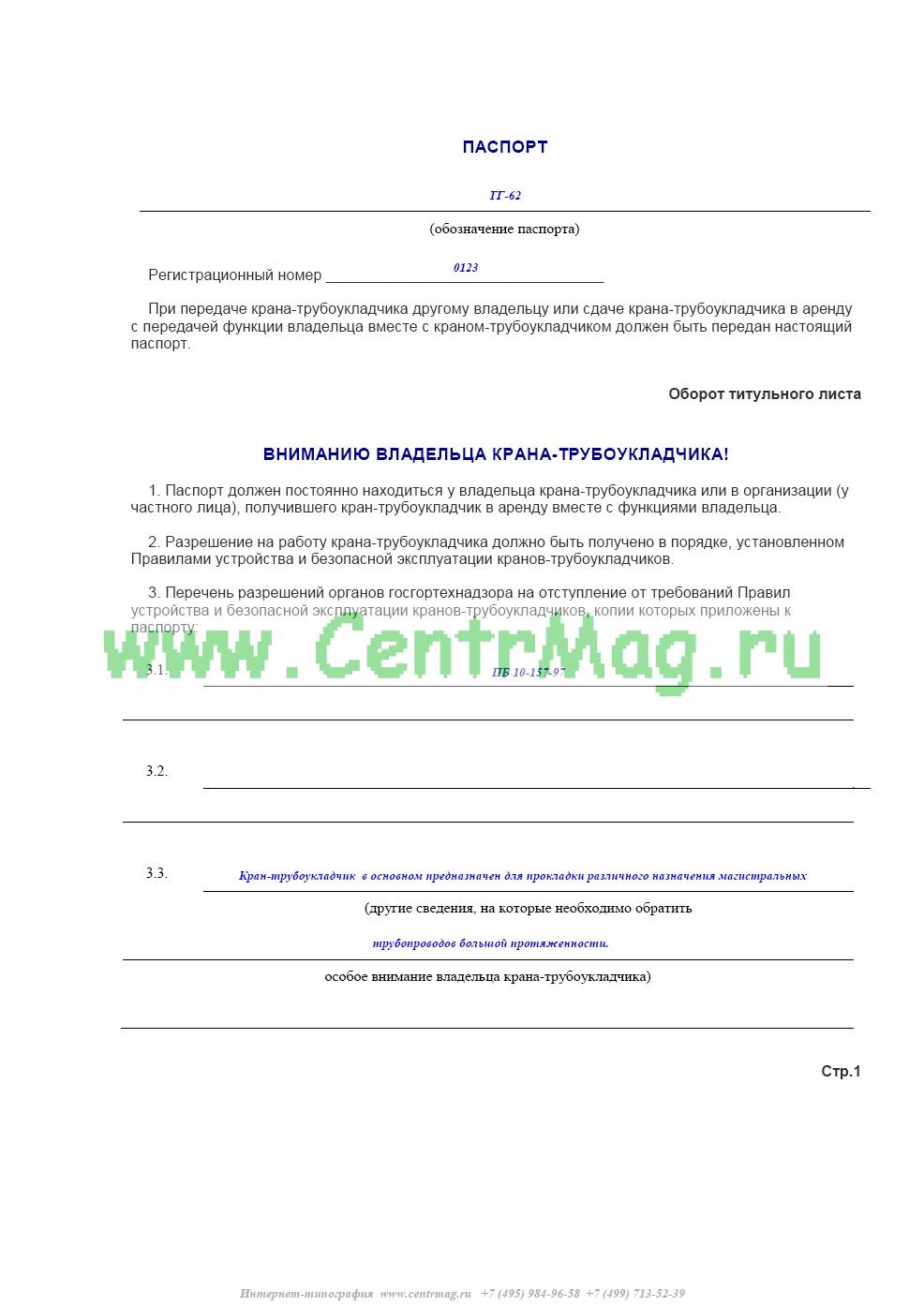 Паспорт крана составляется по документам предприятий, изготовивших отдельные узлы. Документы должны храниться на предприятии, выпускающем краны.