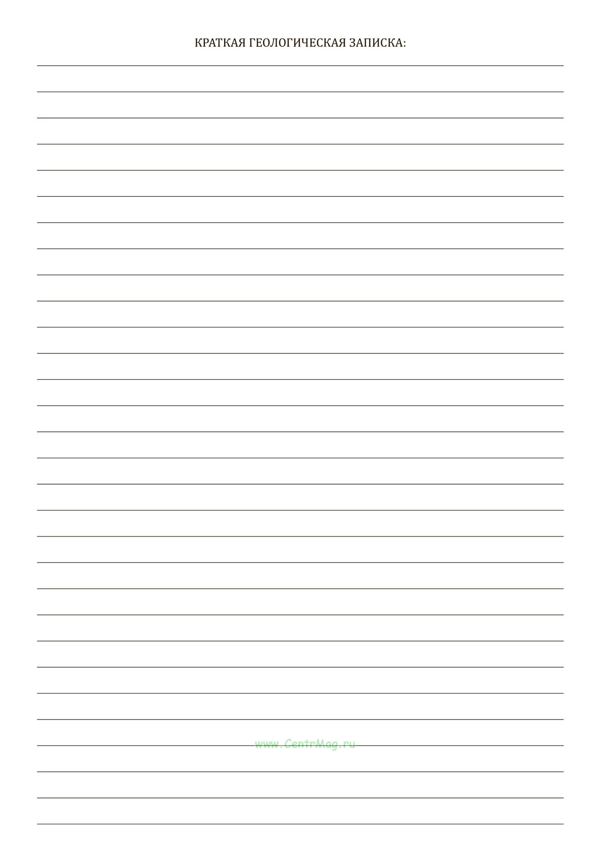 - Краткая геологическая записка;