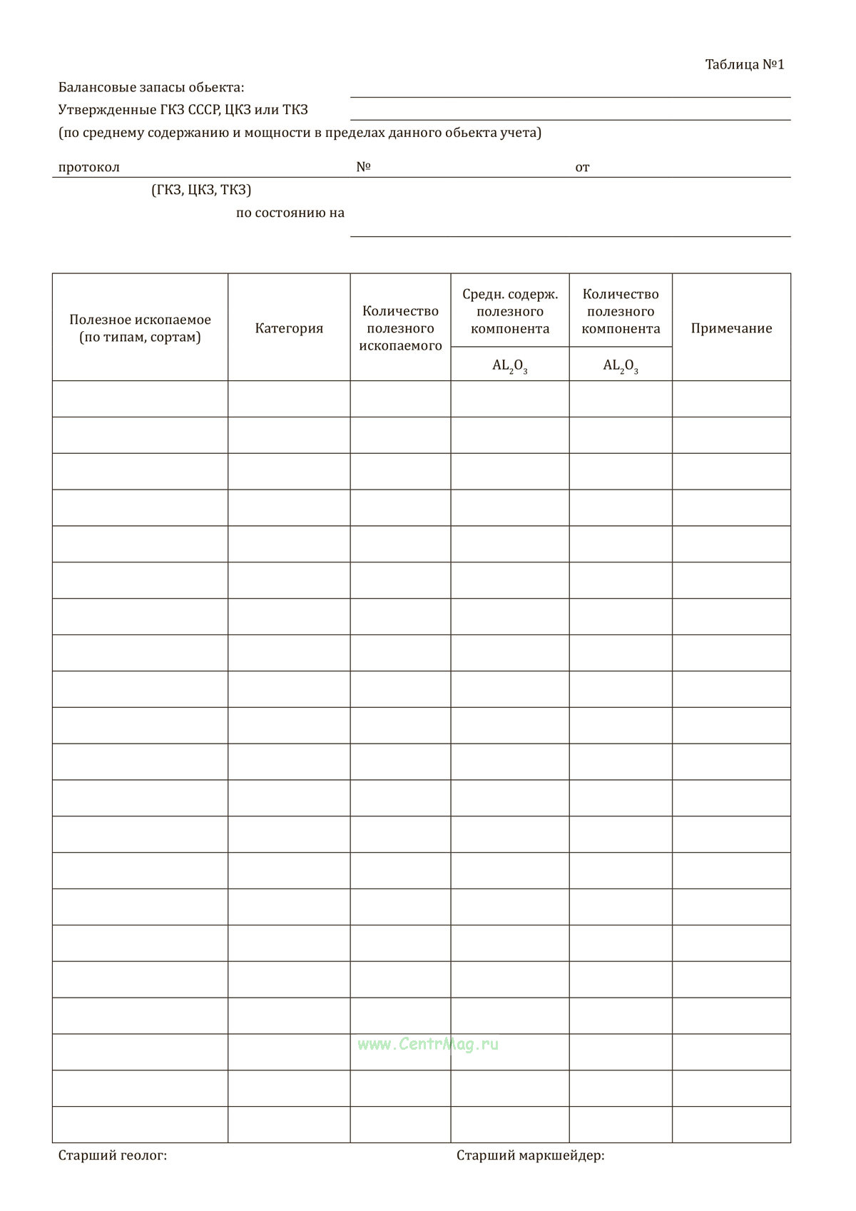 - Таблица №1. Балансовые запасы обьекта;