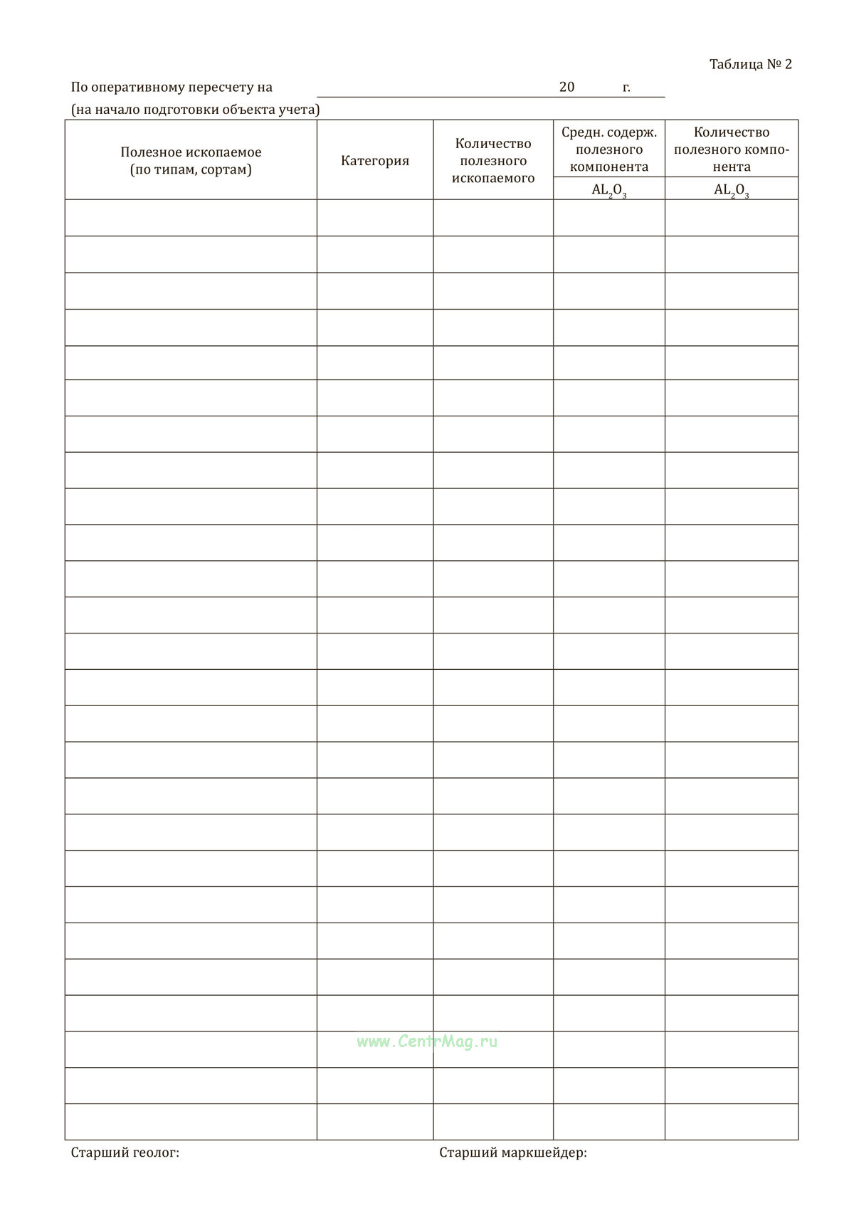 - Таблица №2. По оперативному пересчету;