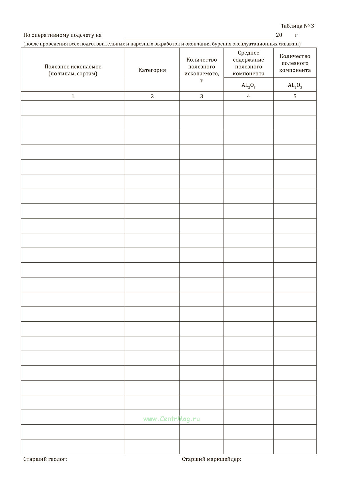 - Таблица №3. По оперативному подсчету;
